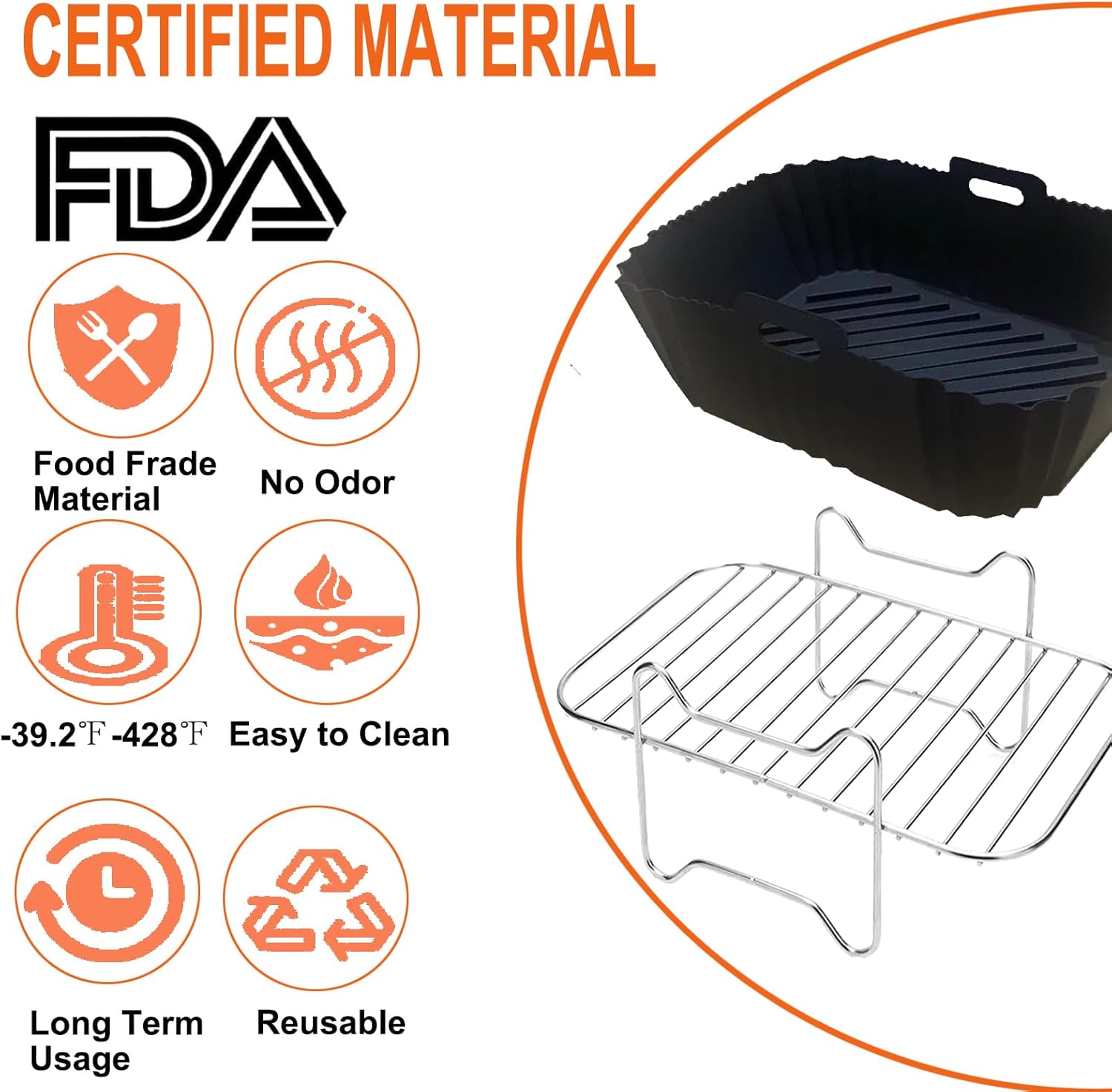 - [6-Teiliges Airfryer Zubehör]: Kompatibel für Ninja AF300EU, Ultenic K20 7,6L, AF400EU 9,5L, LLIVEKIT, Devology, Cecotec 9L, Balter, Stillstern, Innsky 8L Doppel Fritteusen Air Fryer. Paket einschliessen: 2x Rechteckige Silikon Backform, 1x Dämpfen