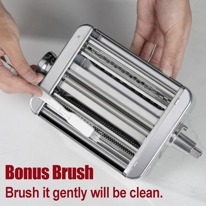 - Mühelose Bedienung und Reinigung: Die glatte, polierte Edelstahloberfläche ermöglicht ein nahtloses Rollen und Schneiden von Nudeln. Ausserdem macht die mitgelieferte Reinigungsbürste die Wartung zum Kinderspiel – nur eine schnelle Bürste und
