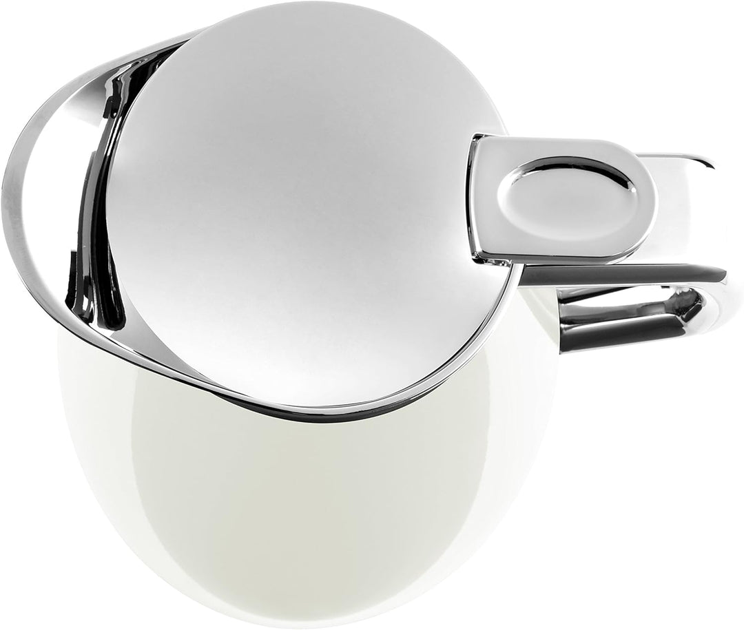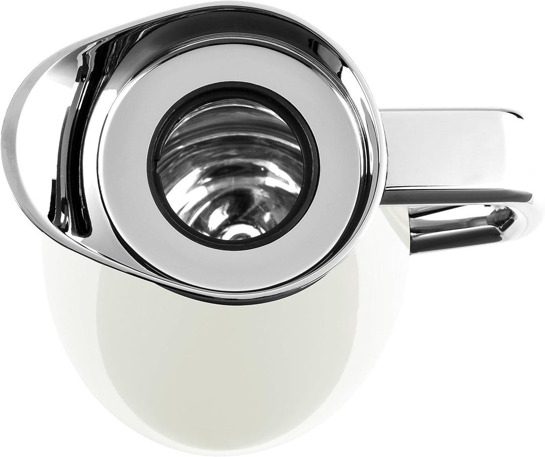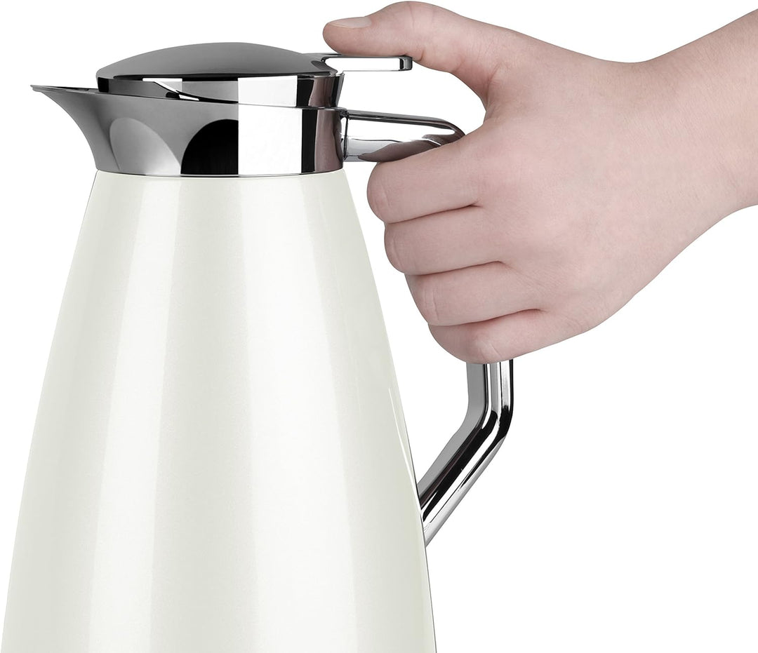 - 100% dicht, Portionsgenaue Einhandbedienung mit Ausgiesstaste, 1 Liter Volumen für ca. 8 Tassen, Tropffreies Ausgiessen, Edles Design durch hochglanzverchromten Aussenkörper