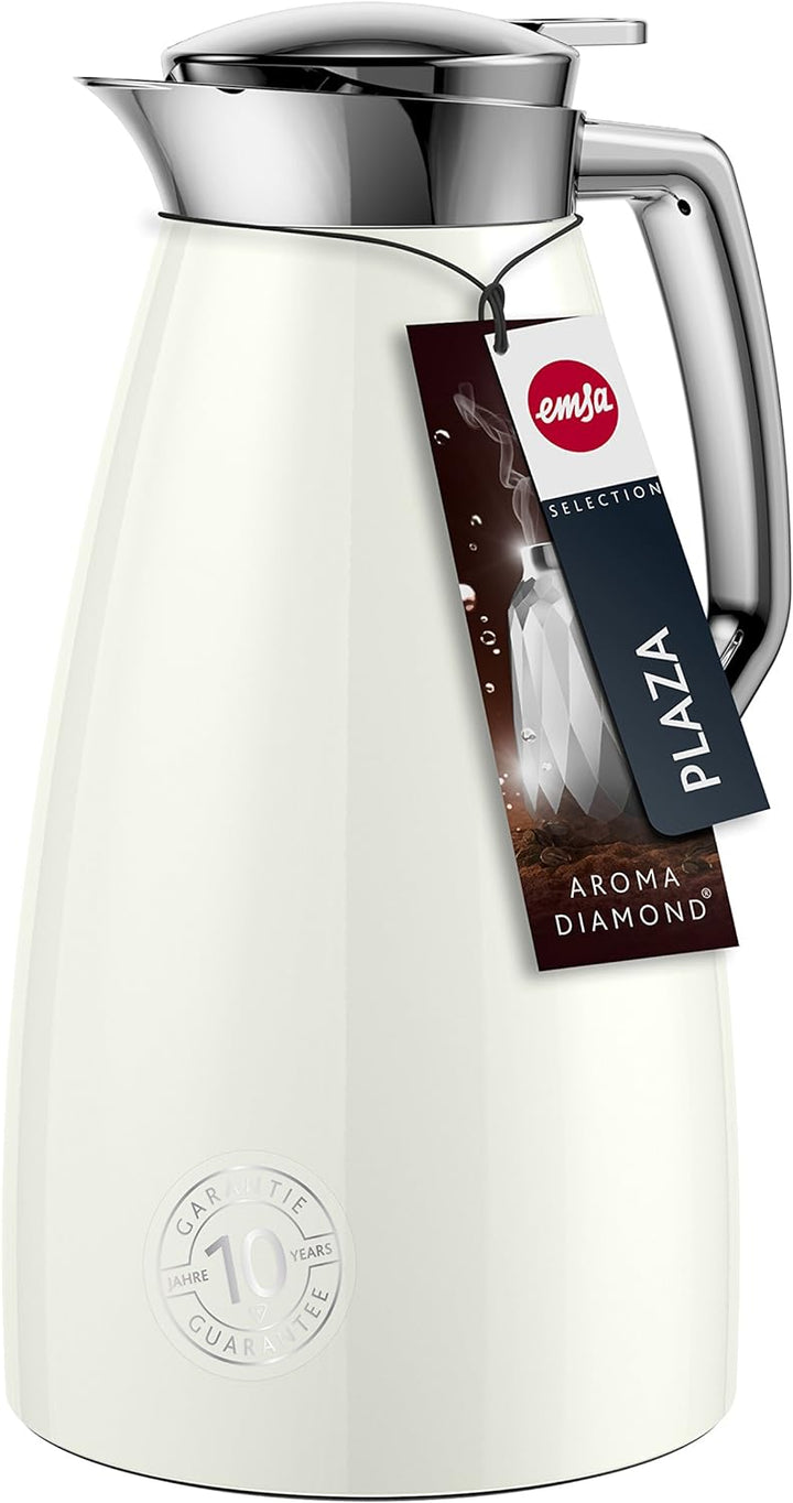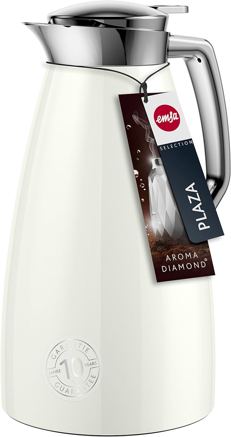 - Lieferumfang: 1 Emsa Isolierkanne Plaza Eis, Volumen: 1 l, Gewicht: 831 g, Masse (L x B x H): 16,4 x 13,6 x 26 cm, Material: Chrom, ABS