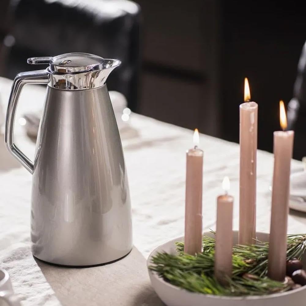 - Lieferumfang: Emsa F4140100 Plaza Isolierkanne, silber, Volumen: 1 Liter, Gewicht: 1 kg, Material: ABS Kunststoff/Gehäuse aus Metall/Isolierkolben aus Glas