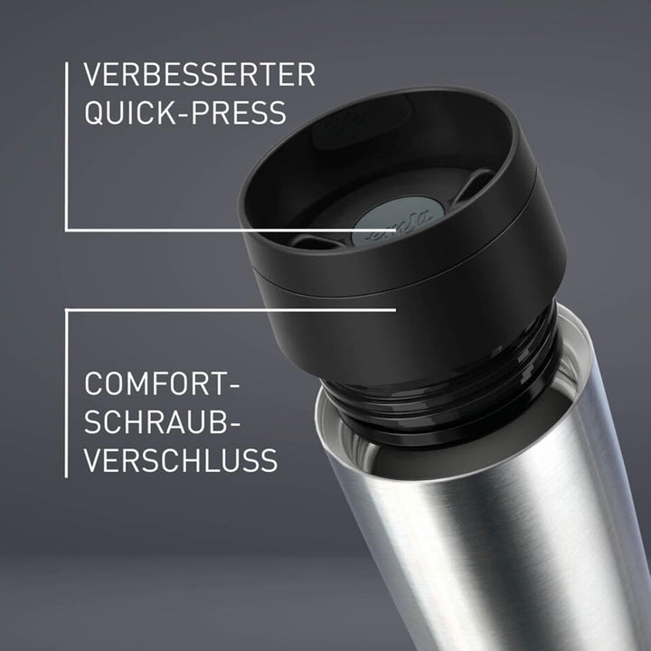 - Praktischer Trinkgenuss: Dank 360°-Rundum-Trinköffnung ist Trinken von jeder Seite möglich; einfaches Öffnen mit nur einer Hand per Quick-Press-Verschluss
