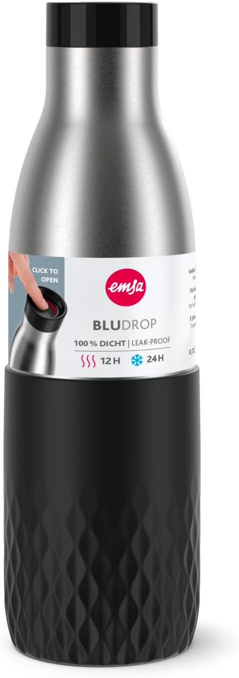 - Lieferumfang: Emsa N31111 Bludrop Sleeve Trinkflasche 0,7 Liter Schwarz