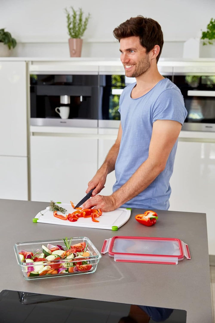 - Verbesserte Rutschsicherheit & Stapelbarkeit: Das verbesserte Design von Clip & Close zeichnet sich durch einen verstärkten Rand und eine spezielle Stapelkante aus, die ein sicheres, bequemes und rutschfestes Stapeln von Behältern gleicher Grösse