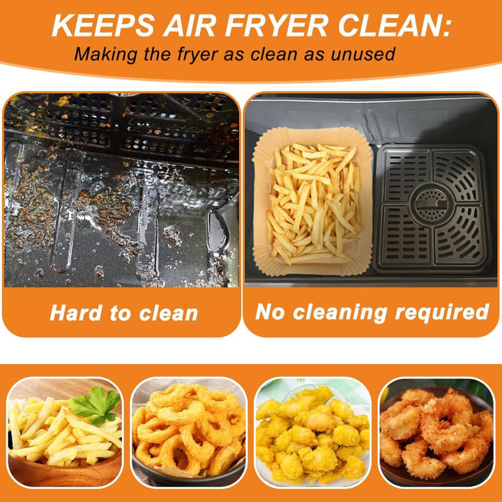 - 🍔Hält die Fritteuse sauber - Die Backpapiereinlage mit erhöhtem Rand (5 cm) schützt die Seiten der Fritteuse und verhindert, dass Lebensmittel an der Fritteuse haften bleiben. Macht die Fritteuse so sauber wie unbenutzt, spart Abwasch und schützt