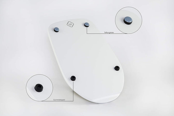 - Die Gleitfähigkeit wird durch spezielle Teflongleiter an der Unterseite des Brettes gewährleistet.