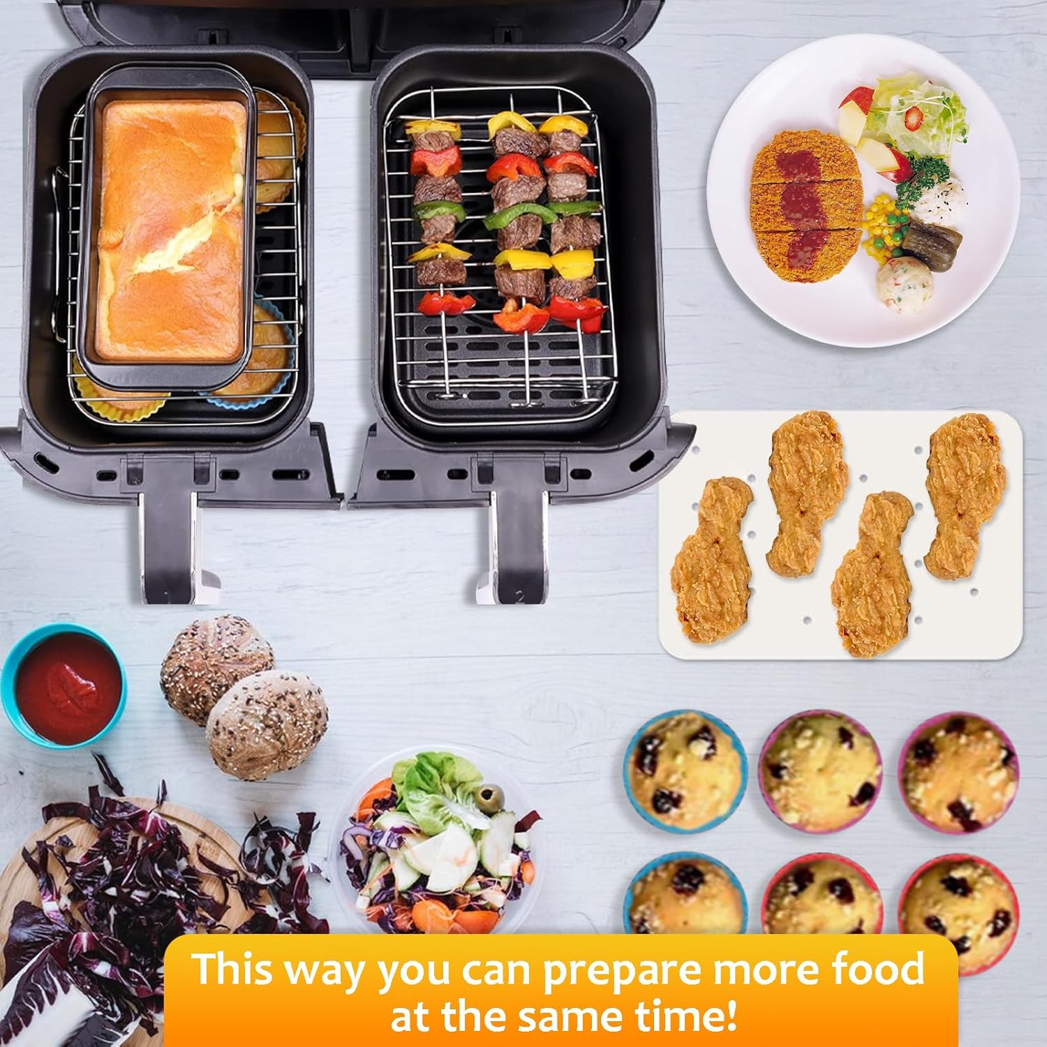 - 🥧[Zubehör für Dual Zone Heissluftfritteusen]: Mit perfekte kompatibilität für Ninja Foodi 7,6L AF300EU, 9,5L AF400EU, Princess 182074, Innsky 8L,Emerio AF-126672, Instant Pot 7,6L, N8WERK, MAXXMEE, und Alle 7,6L-9,5L Doppelkammer Luftfritteuse,