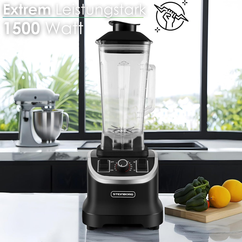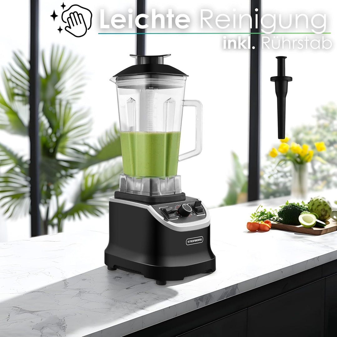 - ✔️ Highlights: Leistung: 1500 Watt Motor: 9535 Vollkupfer-Motor mit Thermostat Mixbehälter: 2 Liter, Tritan-Material (BPA-frei) Klingen: 6-Blatt-Design, 304 Edelstahl Sicherheitsmerkmale: Sicherheitsschalter, Überlastschutz Zubehör: Rührstab