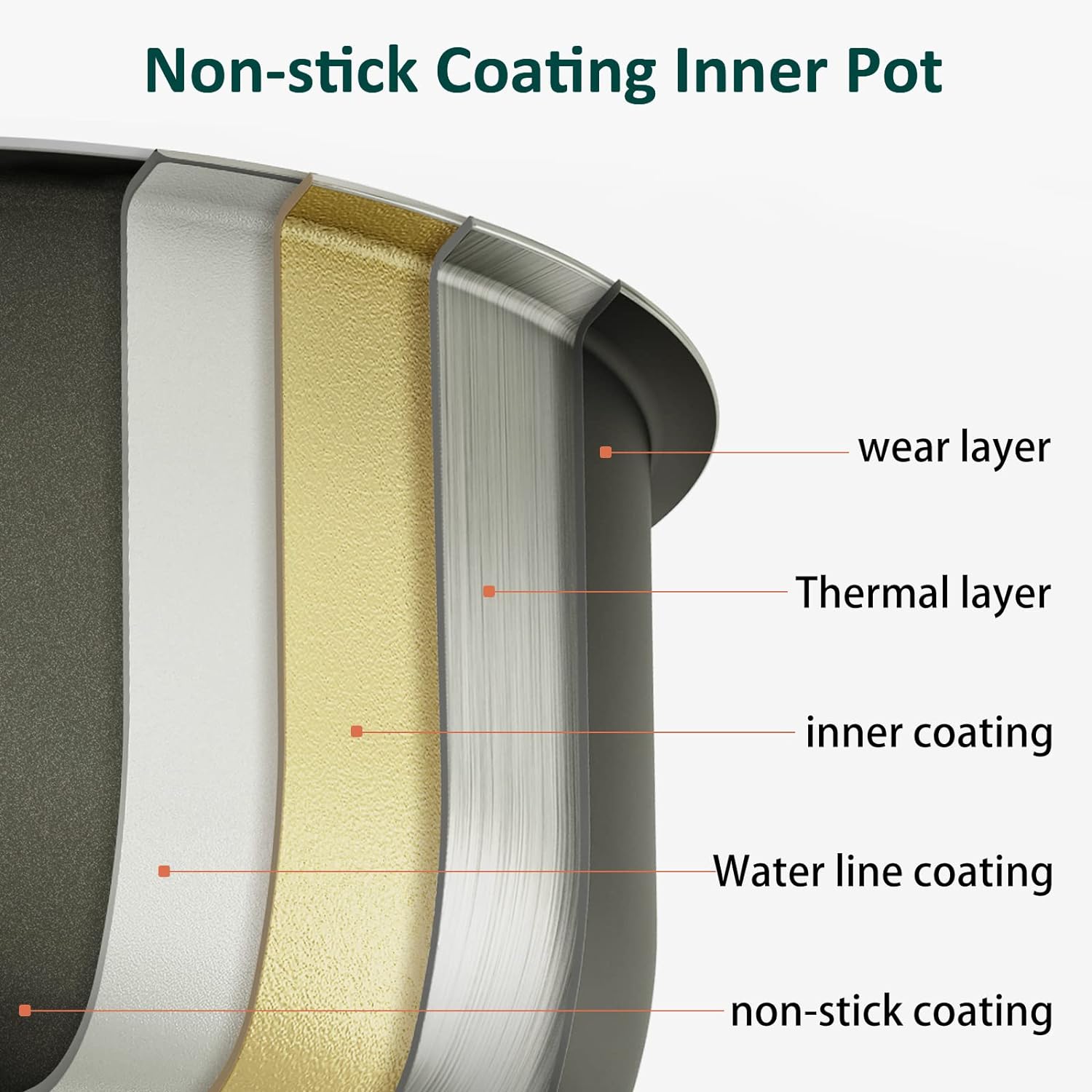 - Antihaft-Innentopf - Nach dem Kochen leicht zu reinigen, einfach einen weichen Schwamm mit heissem Seifenwasser verwenden, um den Topf vorsichtig abzuschrubben.