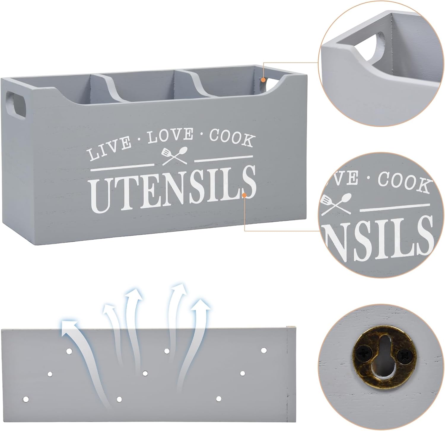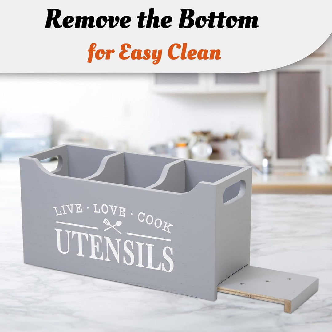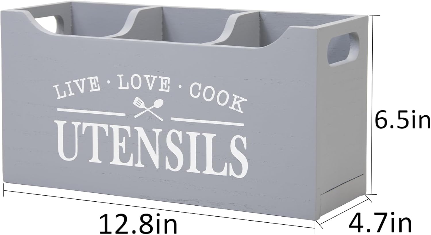 - LARGE UTENSIL HOLDER: The wood utensil organizer has 3 compartments that can separate different cooking tools to effectively organize your spoons, spatulas, and whisks to tame kitchen chaos.