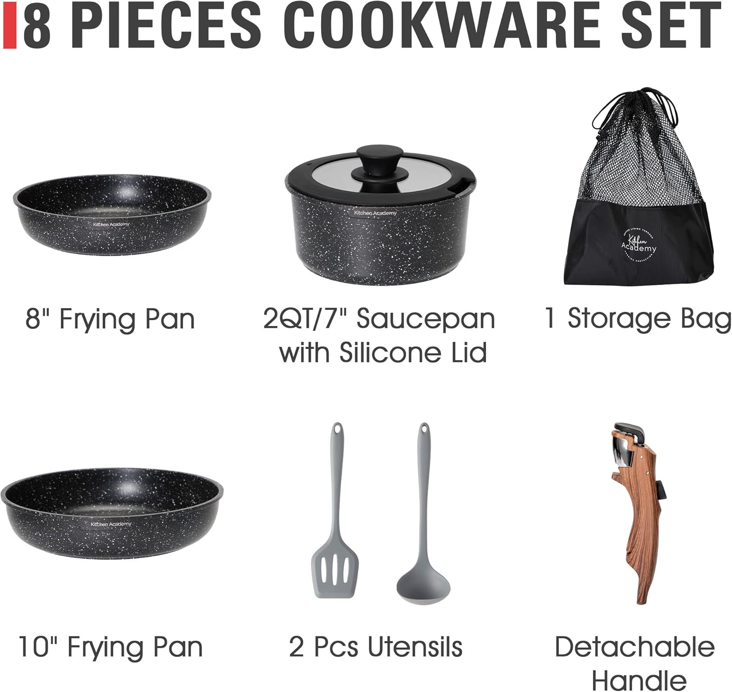 - Unverzichtbare Kochgeschirr-Sets Beinhaltet - 1 x Pfanne 20cm, 1 x Pfanne 25cm,1 x Stielkasserolle mit Deckel 18 cm/1.7 L,1 x Silikon Pfannenwender,1 x Silikon Kochlöffel,2 x Pfannenschoner.