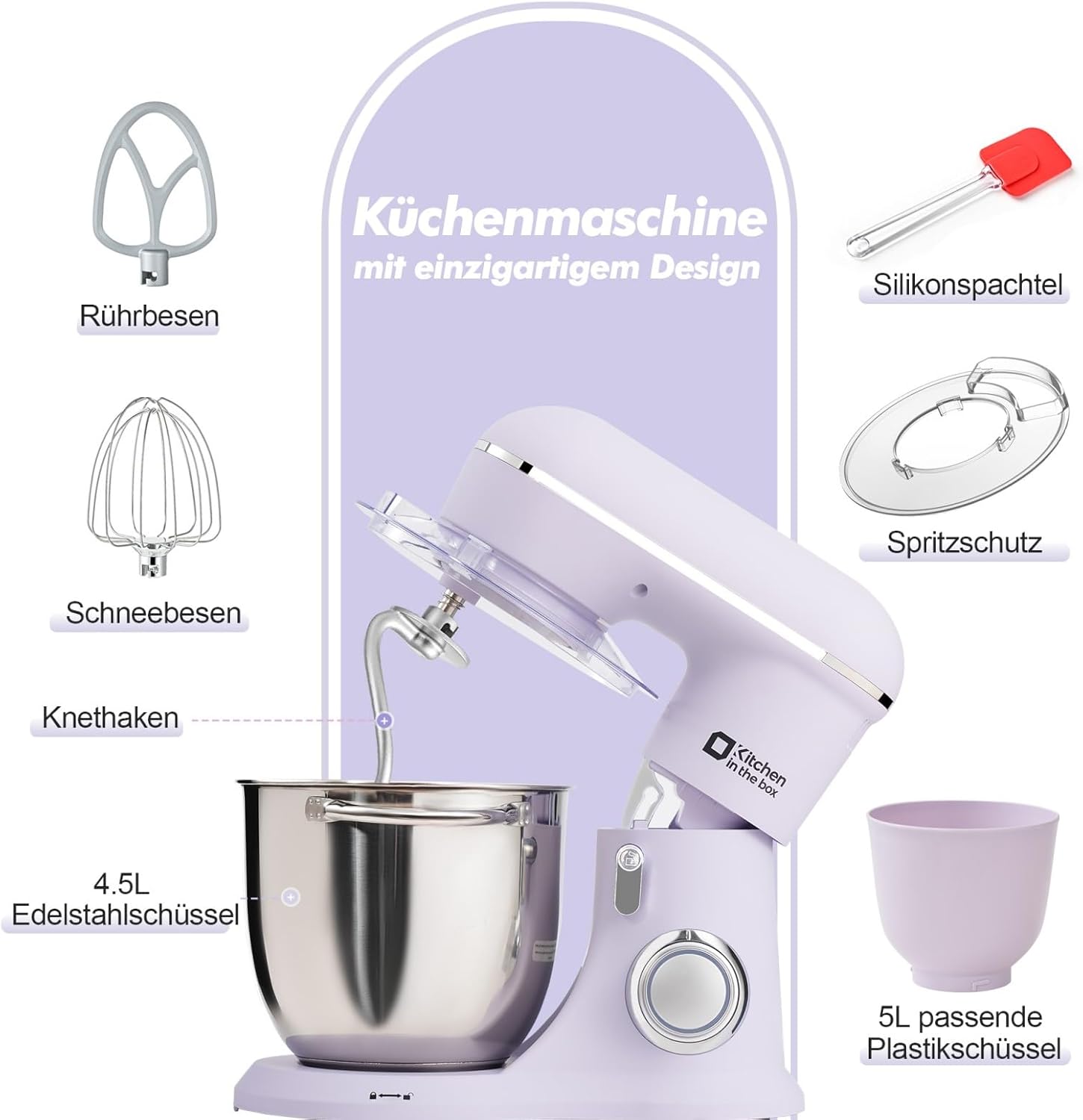 - Verbessertes Zubehör, spülmaschinenfest: Der schutzbeschichtete Aluminium-Knethaken, der Rührhaken und der Schneebesen der Küchenmaschine sind einfach zu installieren sowie robust und langlebig. Sowohl die Aufsätze als auch die Edelstahlschüssel