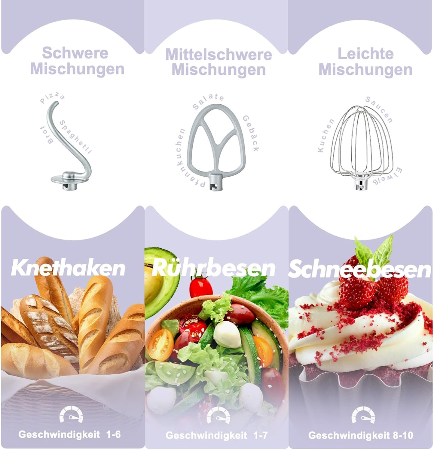 - 10+P Geschwindigkeit: Die Teigmaschine verfügt über eine 10+P Geschwindigkeitseinstellung, die für fast alle Rezepte geeignet ist, egal ob schnelles oder feines Mischen, um Ihren unterschiedlichen Bedürfnissen gerecht zu werden. Die Pulse-Funktion