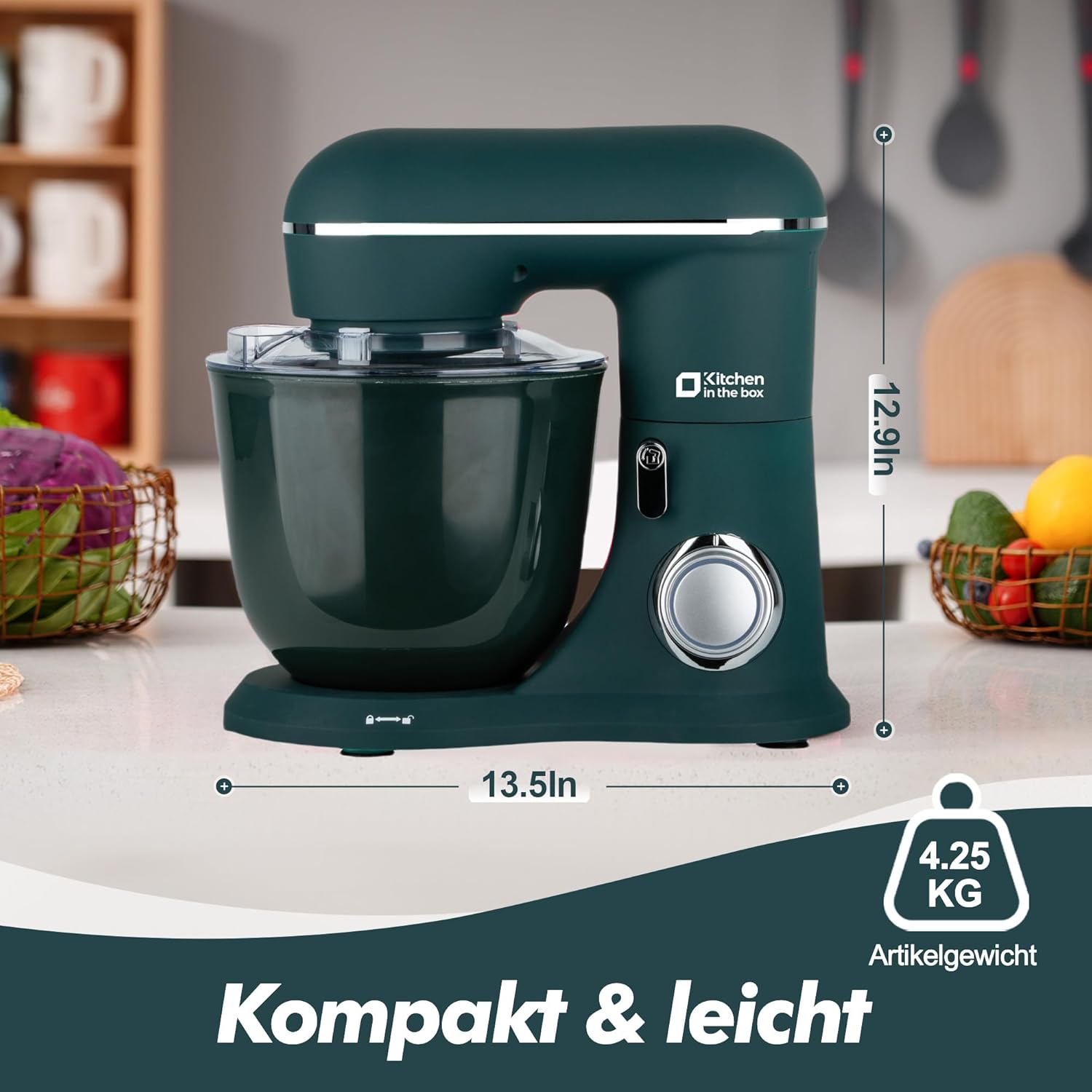- Leistungsstark, 1300 W: Die Küchenmaschine verwendet einen 1300 W Motor aus reinem Kupfer, der hocheffizient und leistungsstark ist. Motoren aus reinem Kupfer leiten Strom schnell, sind nicht anfällig für Überhitzung, haben einen geringen