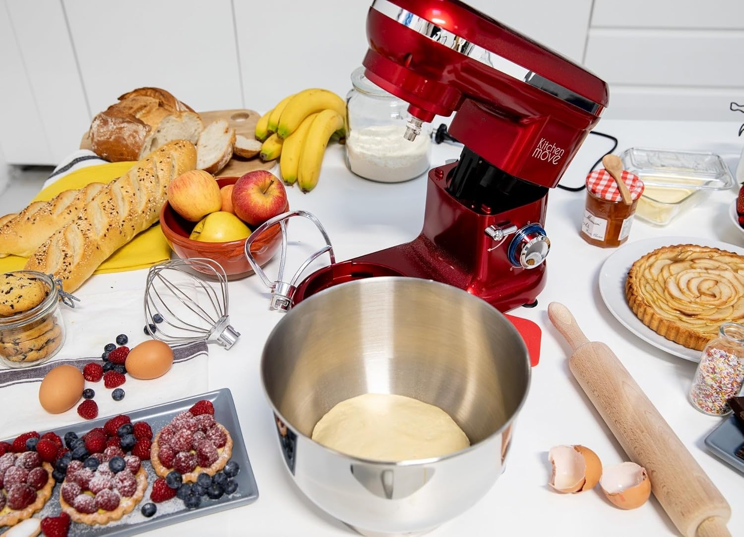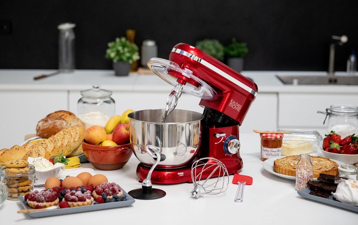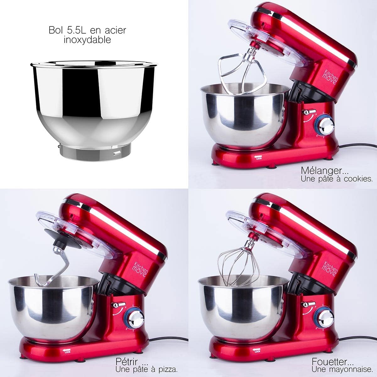 - Patissierroboter, Praktischer Teigroboter, Multifunktionaler Küchenroboter, Stabiler und schneller professioneller Teigkneter mit 6 Geschwindigkeiten und solider 5,5L Schüssel 1500W mit Mixer, Knethaken, Schneebesen und Spatel. Einfaches Kneten mit