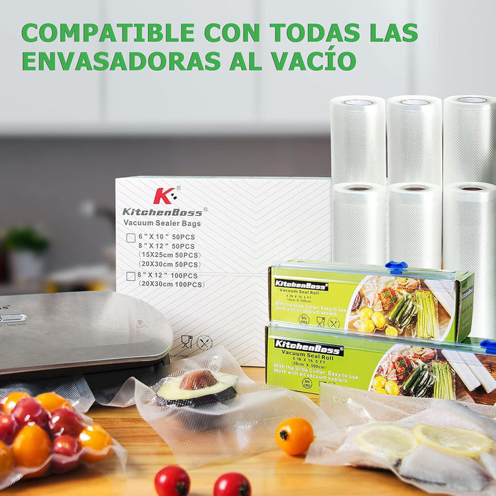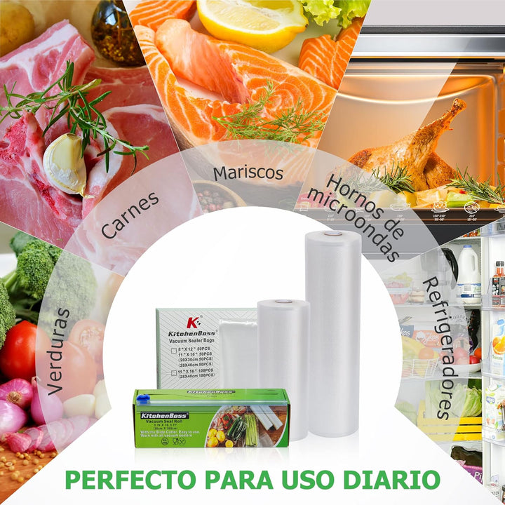 - Mit 1 Schneidebox: Das spezielle Design der Schneidbox ermöglicht die Möglichkeit, die Vakuumbeutel auf jede gewünschte Grösse zu schneiden, ohne dass Sie eine Schere benötigen. Das Einkochen von Gemüse, Obst, Fleisch oder Fisch in grosser Grösse