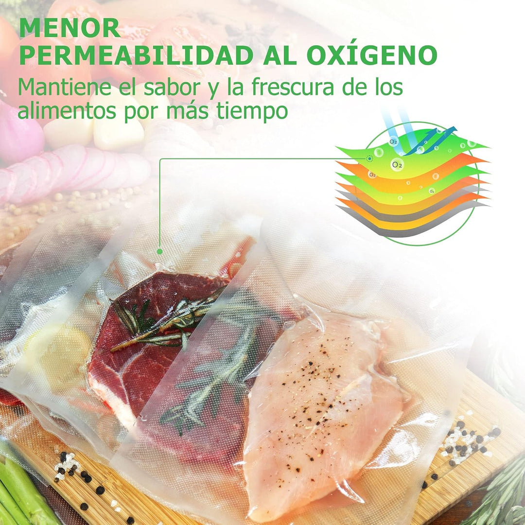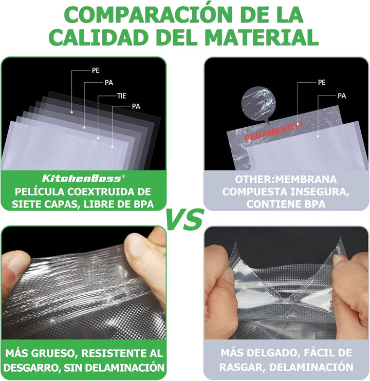 - 7-lagige Koextrusionsfilm: Das mehrschichtige BPA-e Material macht die Beutel sicherer, dicker und stichfest. Die geprägte Maschenfläche beträgt 10 mm und die glatte Oberfläche beträgt 4 mm. Perfekt zum Einfrieren, Mikrowelle, Sous Vide Es ist
