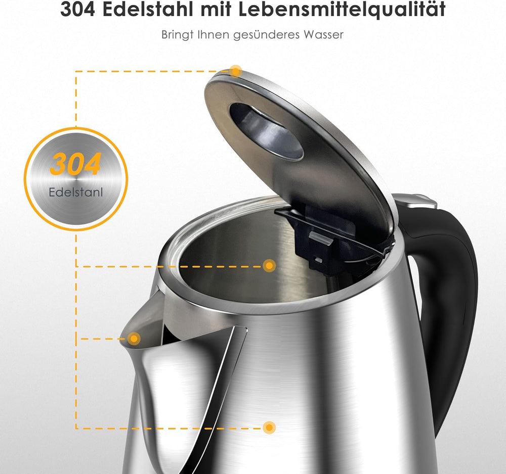 - 【Grosse Kapazität und effizientes Erhitzen】Dieser Wasserkocher Edelstahl hat eine Kapazität von 1,7 l und eignet sich für den Einsatz zu Hause oder im kleinen Büro. Mit einem 2100 W Hochleistungsheizsystem kann er Wasser in kurzer Zeit schnell