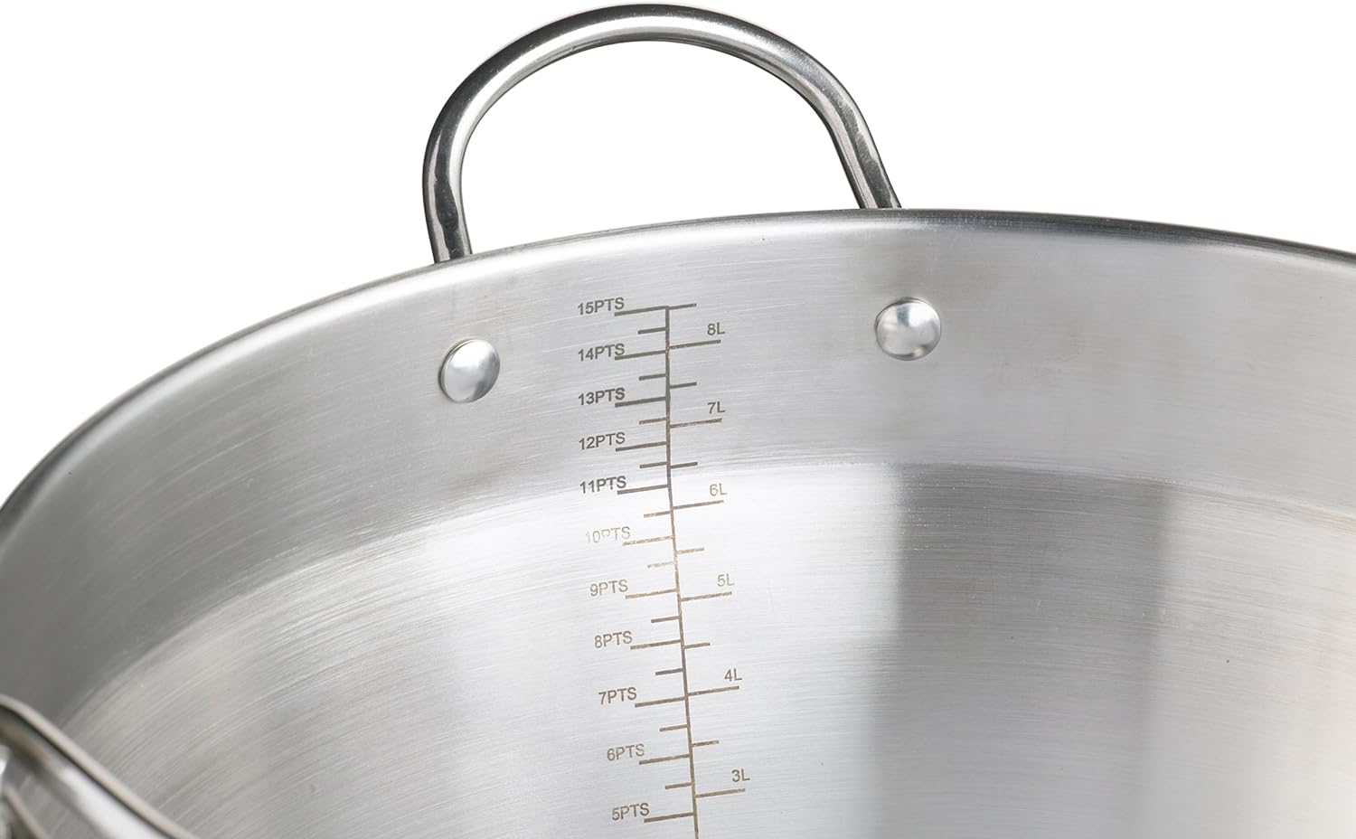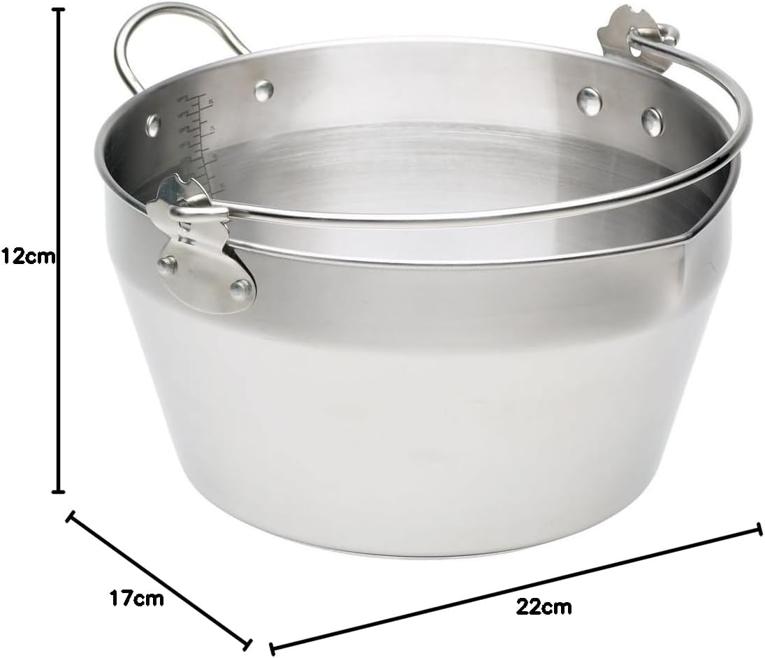 - Messmarkierungen: Der Kochtopf weist auf der Innenseite praktische Pint- und Liter-Markierungen auf, was Ihnen das genaue Befolgen von Rezepten beim Einkochen von Marmelade besonders einfach macht