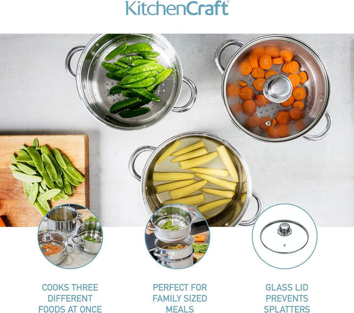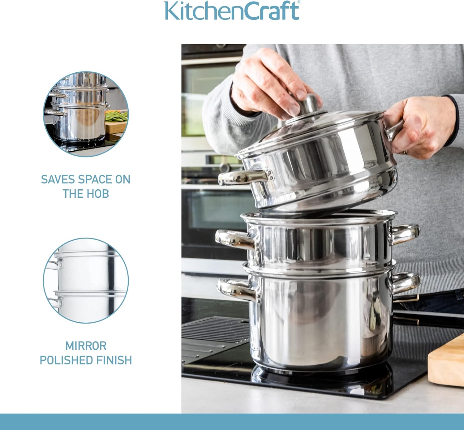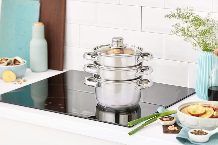 - Sparsam: Da Sie für diese aus drei Teilen bestehenden Dampfgarer Topf nur ein Kochfeld verwenden müssen, können Sie Energiekosten sparen und erhalten innerhalb weniger Minuten leckere Mahlzeiten