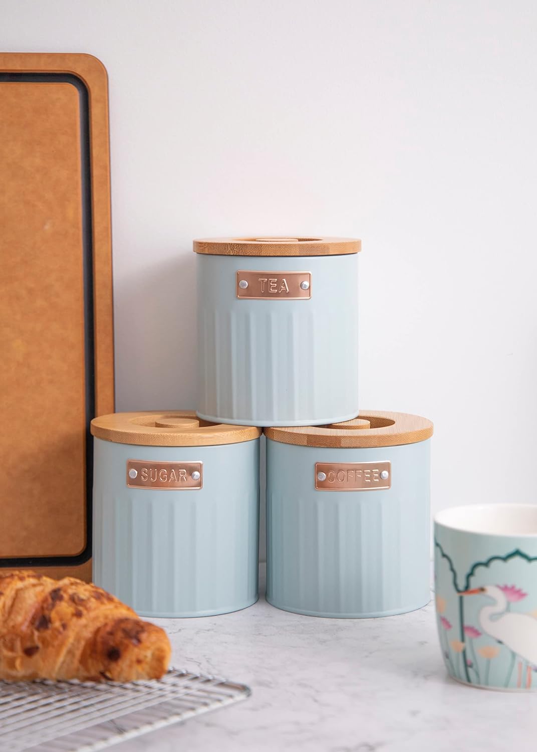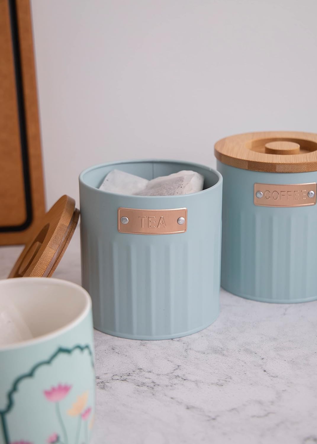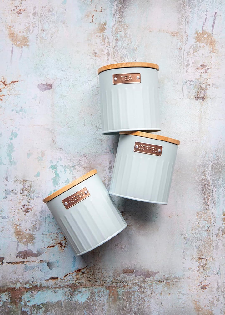 - Beschriftete Kanister: Für Tee, Kaffee und Zucker