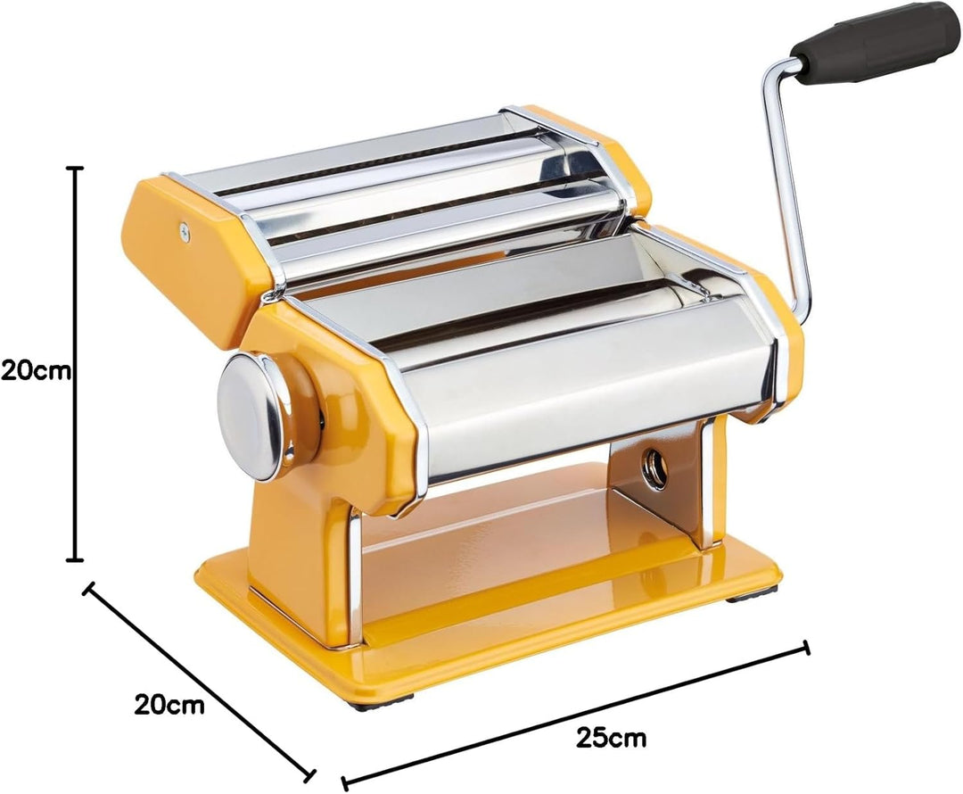 - Nudeln International: goldgelbe Nudelmaschine aus Edelstahl mit Tischzange zur Befestigung und bis zu 9 verschiedenen Nudelgrössen, für Pasta, Teig und vieles mehr