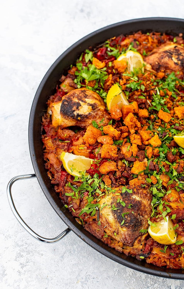 - SPANISCHE KÜCHE ZU HAUSE: Geniessen Sie reichhaltige und authentische mediterrane Aromen – ohne zu Verreisen – jetzt auch zuhause mit dieser extragrossen Paella Pfanne