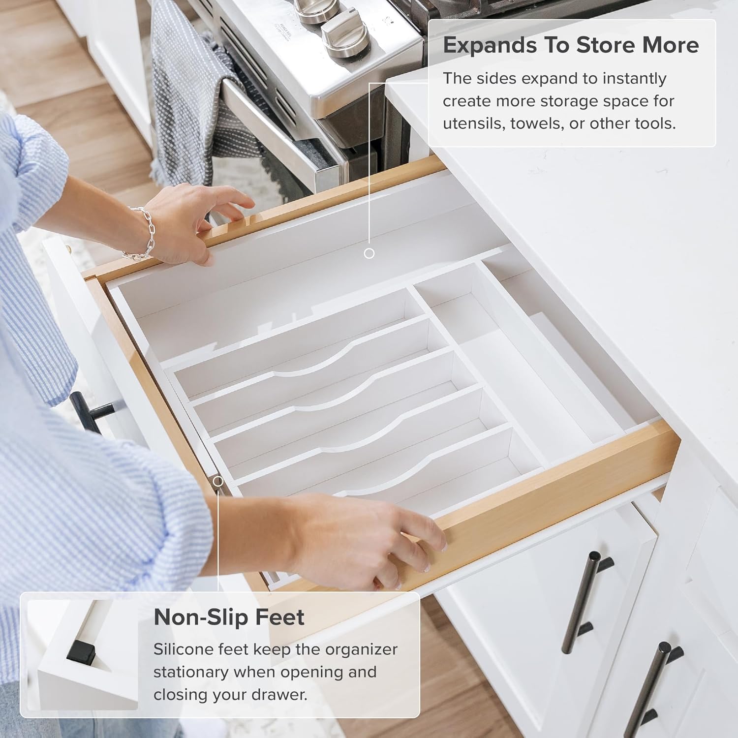- Verbesserte Schubladenaufbewahrung: Dieser weisse Organizer mit 8 Fächern (7 fest + 1 verstellbar), misst 44,2 cm in der Länge und 6,9 cm Höhe, maximiert das Speicherpotenzial deiner kleineren Schublade. Er lässt sich von 27,9 cm auf 48,3 cm in der