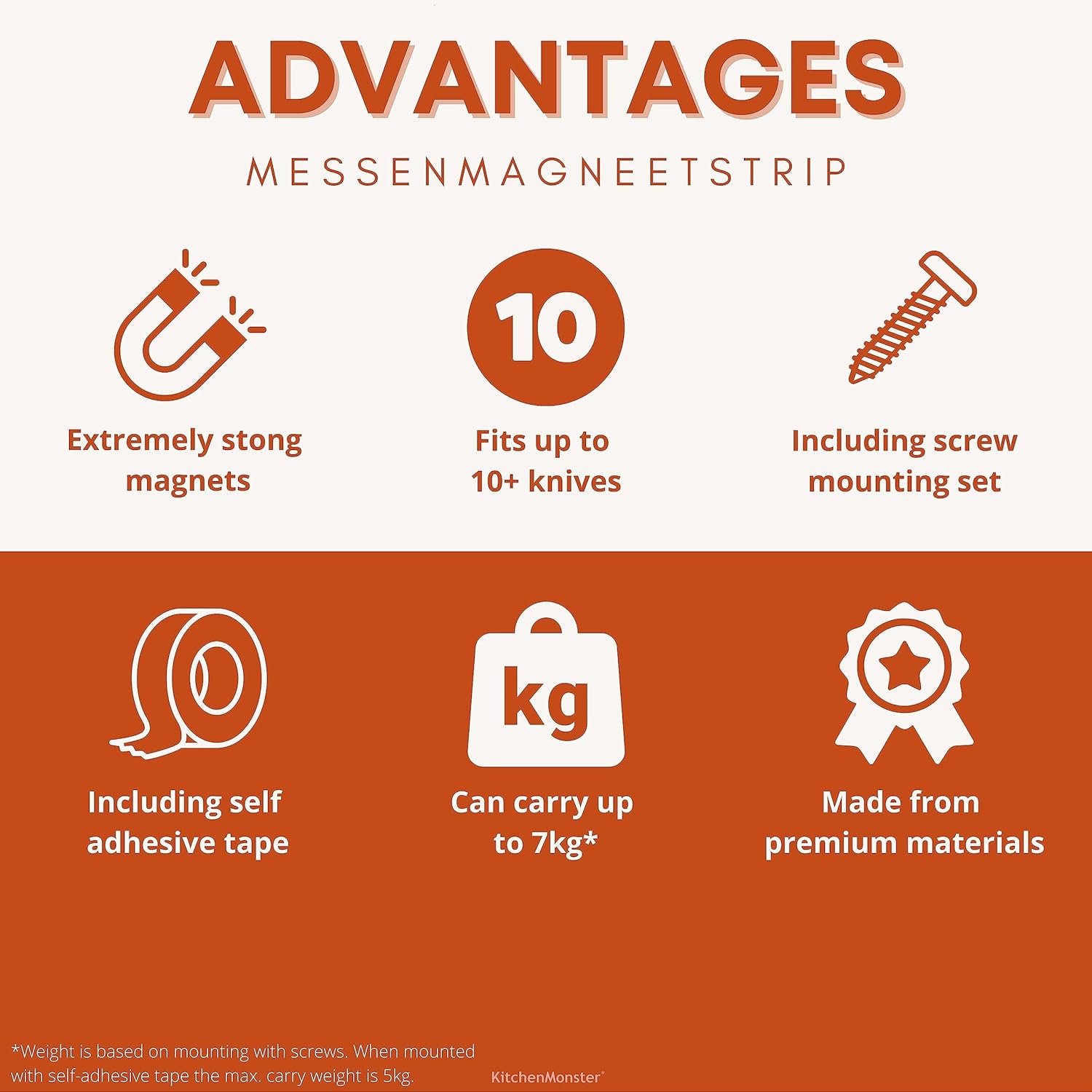 - Messer Magnetleiste geeignet für mehr als 10 Messer unterschiedlicher Grösse und für magnetleiste werkzeug. Mit dieser praktischen Küchenleiste können Sie Ihre Messer sicher & platzsparend aufbewahren