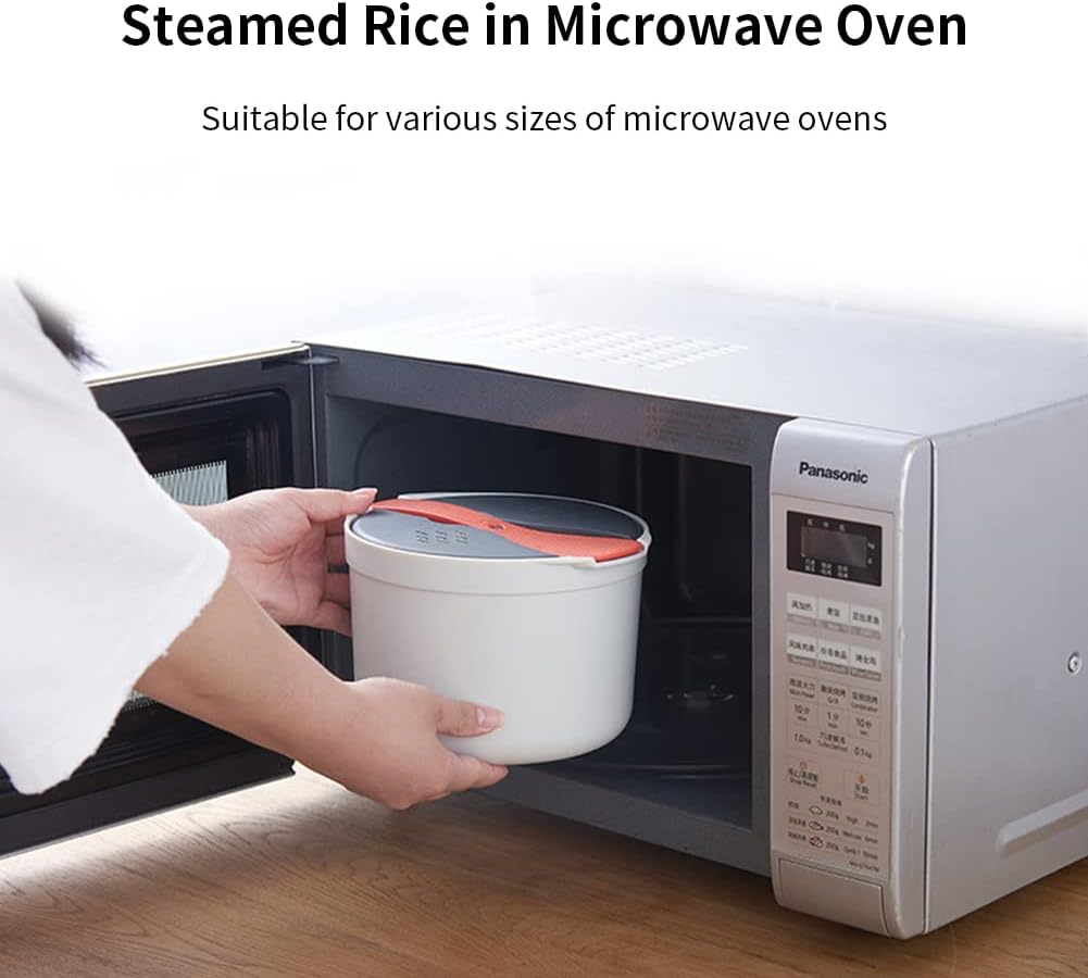 - 【LANGLEBIGES MATERIAL】 Der Mikrowellen-Reiskocher besteht aus lebensmittelechtem PP-Material, das geschmacksneutral, sturzsicher, langlebig und lange verwendbar ist.