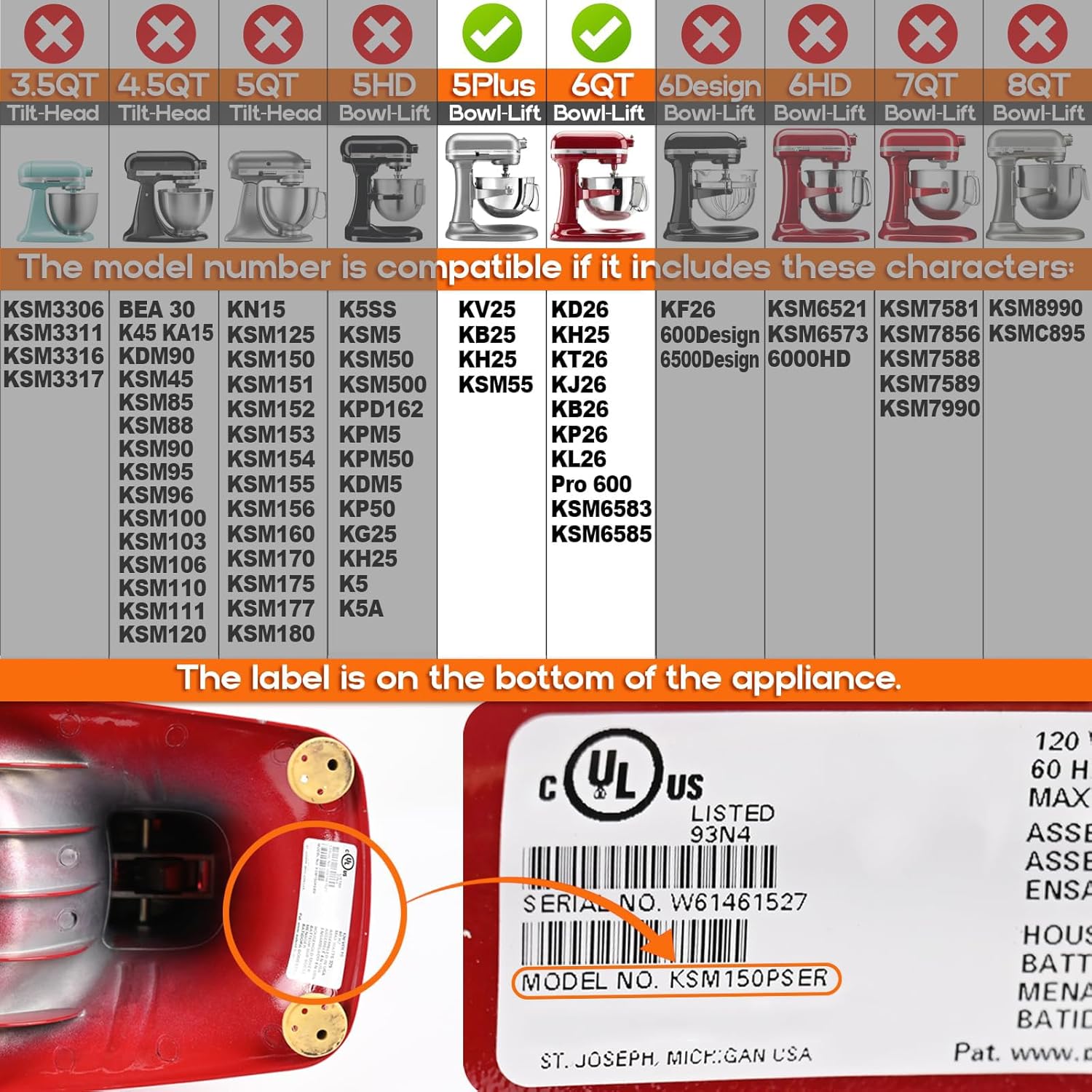 - PQPO 6 Quart Edelstahl-Rührschüssel – kompatibel mit KitchenAid KV25, KB25, KH25, KSM25, KD26, KH25, KT26, KJ26, KB26, KP26, KL26, Pro 600, KSM6583, KSM6585