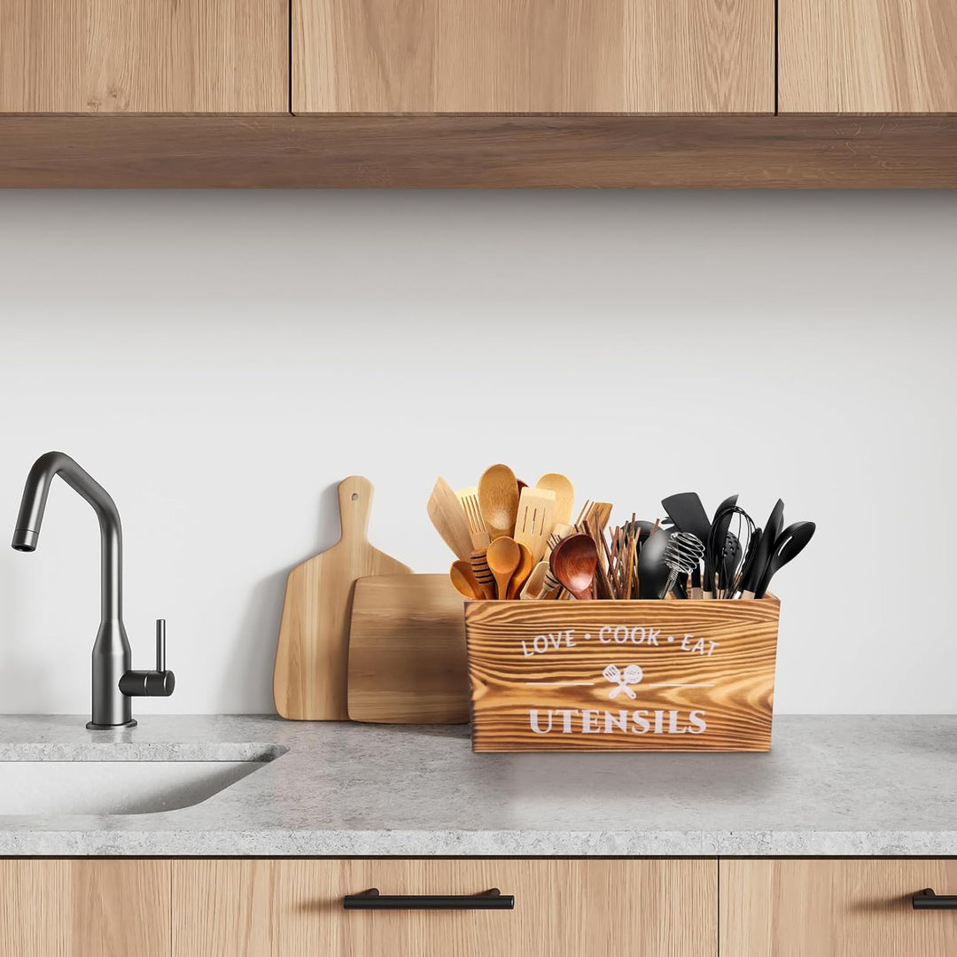 - Besteckkasten aus Holz: Dekorative Besteckkästen aus Holz sind aus hochwertigem Kiefernholz, robust und langlebig. Es ist nicht nur modisch und schön, sondern kann auch effektiv Ihre Kochutensilien oder Geschirr aufbewahren und organisieren