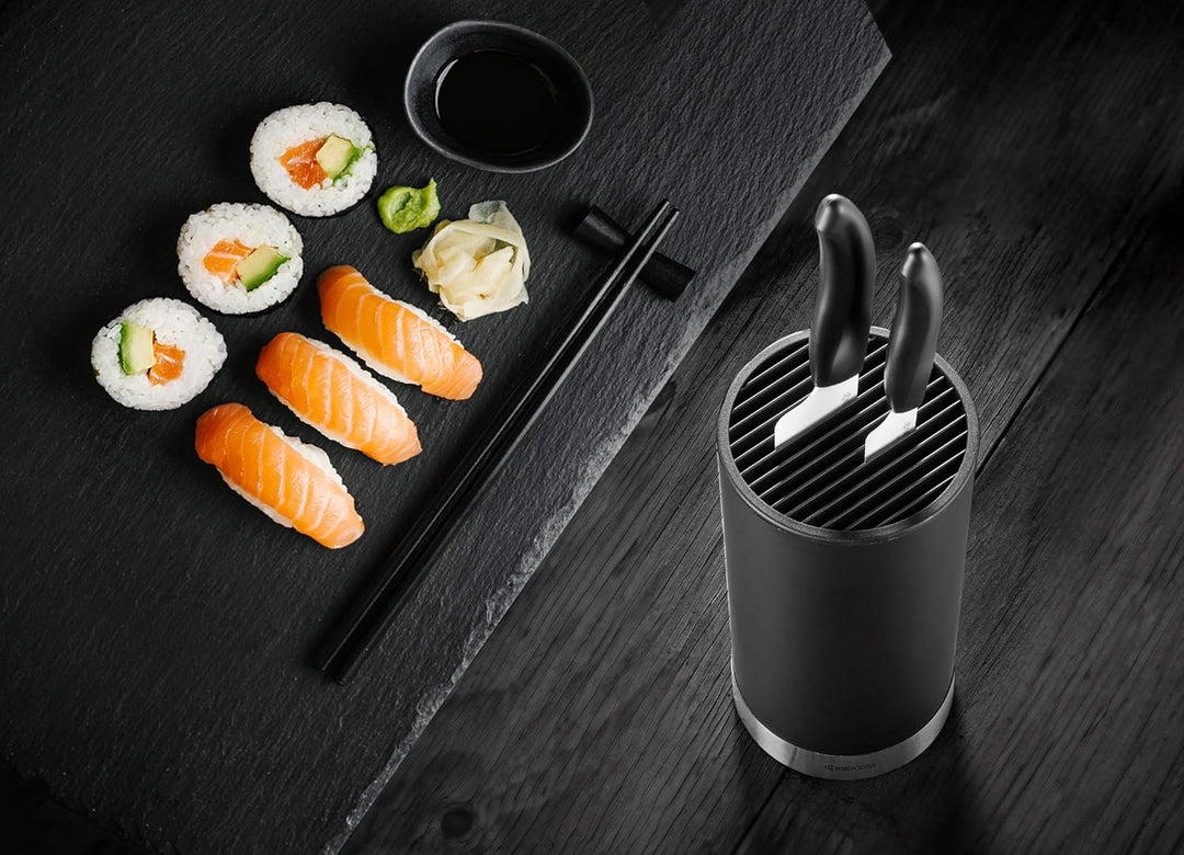 - mehrere Messer-Schächte in denen 6-8 Messer sicher und besonders klingenschonend platziert werden können