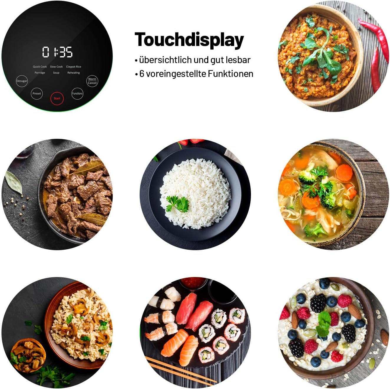 - EINFACH ZU BEDIENEN UND ZU REINIGEN - Die Bedienung wird von jedem bewältigt, alle Einstellungen erfolgen am digitalen Display, an dem der Kochvorgang verfolgt werden kann. Erfreulicherweise ist auch die Wartung sehr einfach. Der Behälter kann im Geschirrspüler gespült werden und Sie müssen nicht den ganzen Nachmittag in der Küche verbringen.