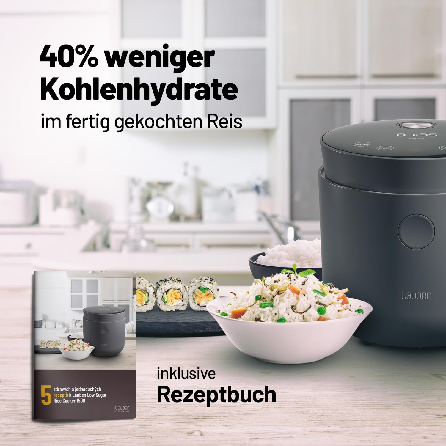- PREMIUM-MEHRZWECK-REISKOCHER MIT LOW-SUGAR-FUNKTION - bei der die Kohlenhydrate dank der speziellen Kochtechnologie abgetrennt werden. Mit diesem Helfer bringen Sie alle Reissorten zur Vollkommenheit und dank den 6 einstellbaren Modi bereiten Sie schnell gesunde und köstliche Gerichte auch aus anderen Zutaten zu. Mit dem Lauben Reiskocher bereiten Sie Hülsenfrüchte, Suppe oder etwa Haferbrei zu, ohne den Herd einschalten zu müssen.