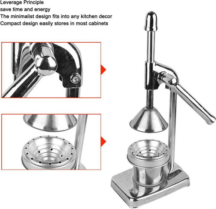 - ARBEITSERSPARNIS - Der Handpressen-Entsafter hat einen ergonomischen langen Griff mit hohem Hebel, der nach dem Hebelprinzip Zeit und Mühe spart.