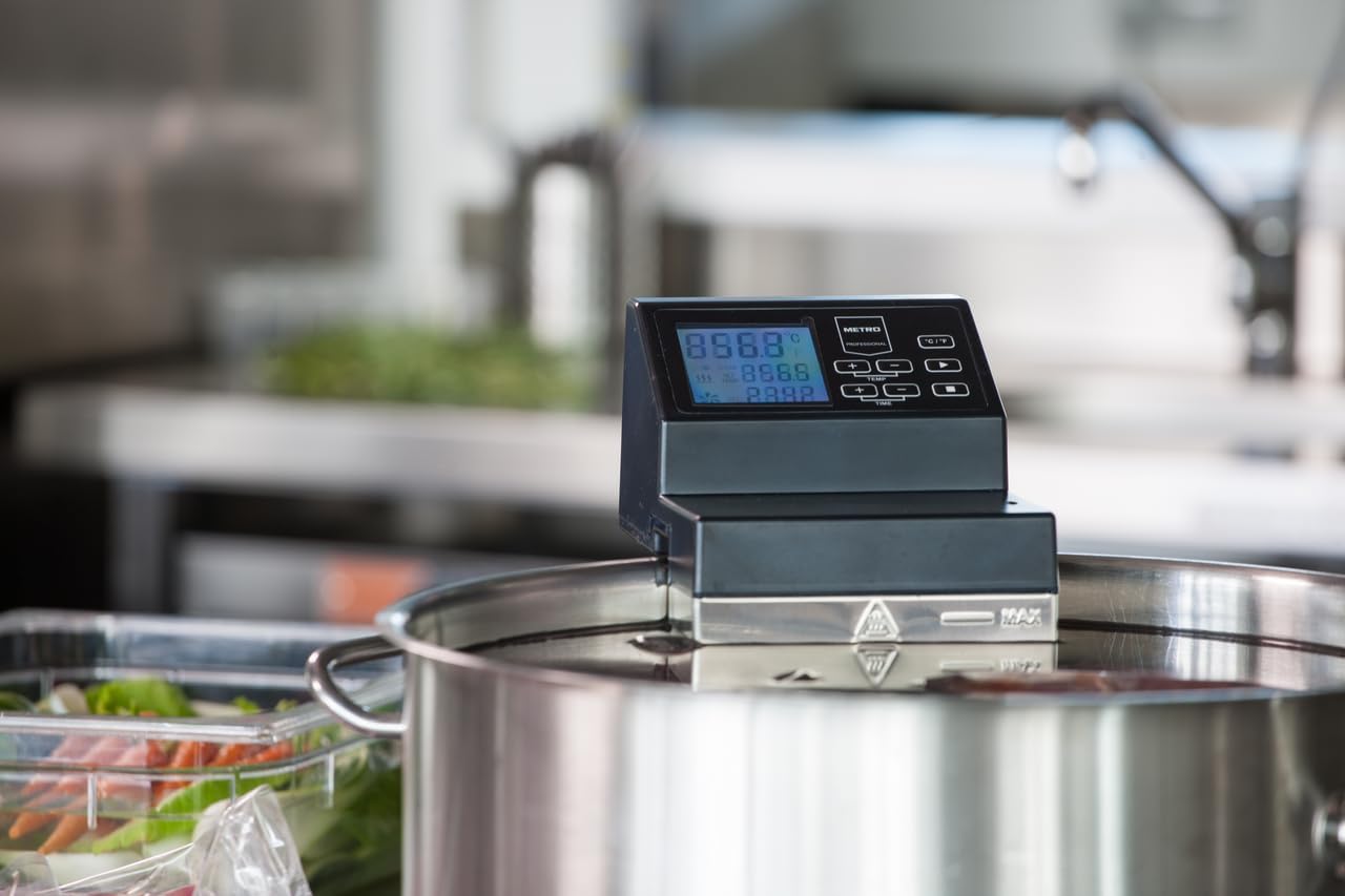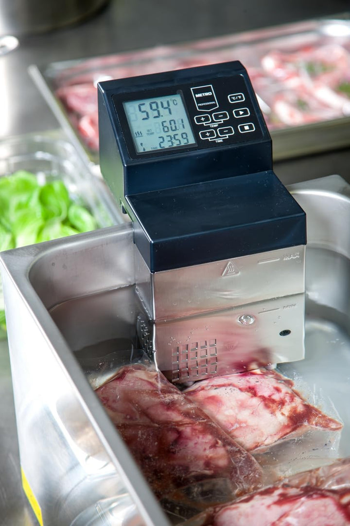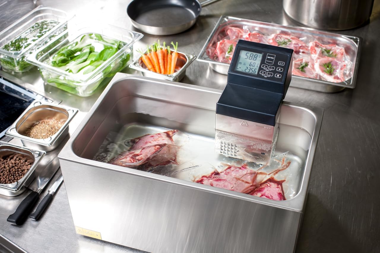 - Der Sous-Vide Garer ist für Töpfe oder GN-Behälter mit einer Mindesttiefe von 18 cm geeignet und besitzt eine maximale Kapazität von 40 Litern