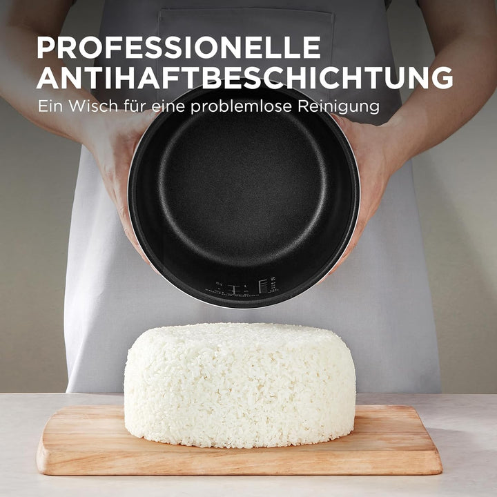- 6-STEP COOKING: Der 6-stufige Kochprozess umfasst Vorheizen, Einweichen, Erhitzen zum Kochen, kontinuierliches Kochen, Verkleistern/Dämpfen und automatisches Warmhalten. Er ist so konzipiert, dass der Reis schnell fluffig wird und eine moderate Süsse,