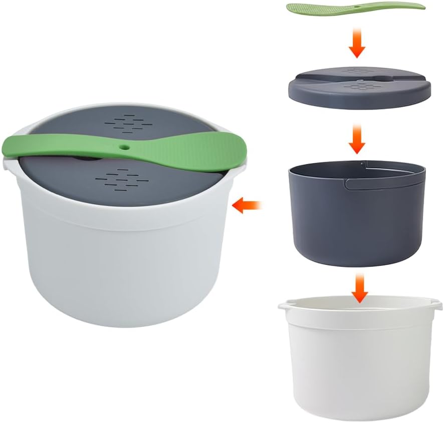 • [Multifunktionales Kochgeschirr]: Multifunktions Kochgeschirr Inklusive Reisschaufel, Sieb, Deckel, Dampfgarer, Mittelgrosser Reiskocher für Mikrowellen geeignet für Mikrowellenherde aller Grössen, der Reis und die Körner werden perfekt abgemessen,