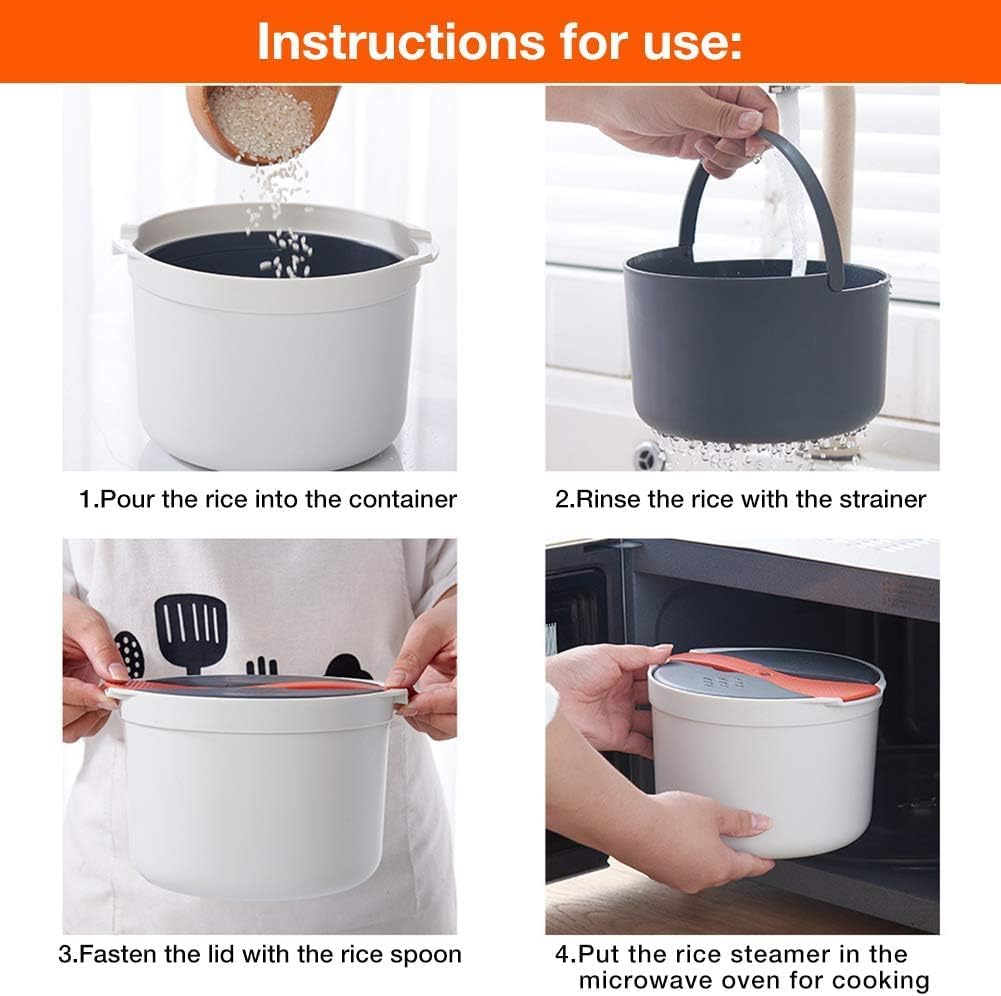 - Mikrowellen-Dampfburger: Dieser Behälter enthält einen Reislöffel, einen Deckel, ein Sieb und einen Dampfgarer, der für Mikrowellenherde unterschiedlicher Grösse geeignet ist.