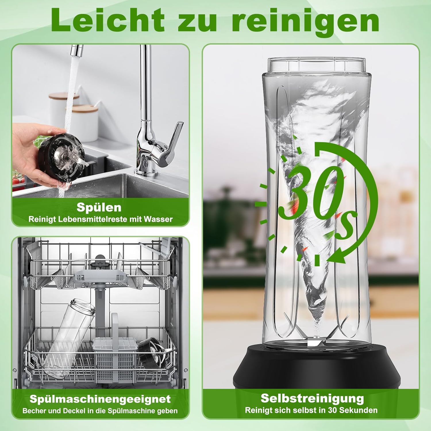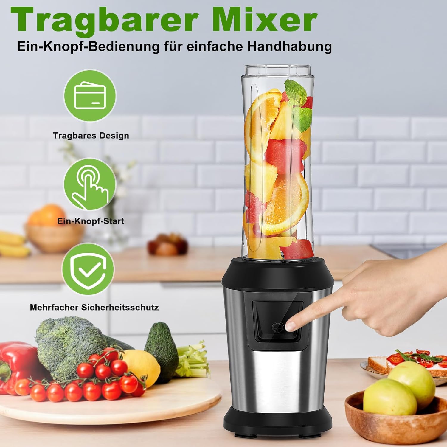 - 【Leistungsstarker Smoothie Maker】Mit einem leistungsstarken 500-Watt-Motor und 23.000 U/min sowie 4 scharfen Edelstahlklingen erzielt dieser Mixer optimale Ergebnisse in nur 20 Sekunden. Alle Zutaten werden vollständig verarbeitet, um Ihr