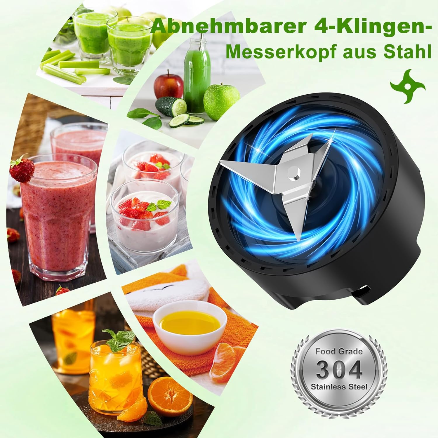 - 【Multifunktionaler Mixer】Dieser Universalmixer mit 4 scharfen Klingen ermöglicht eine optimale Nährstoff- und Vitamingewinnung. Er zerkleinert mühelos Zwiebeln, Kräuter, Gemüse und Früchte. Ideal zum Mischen und Pürieren von Suppen, Saucen,