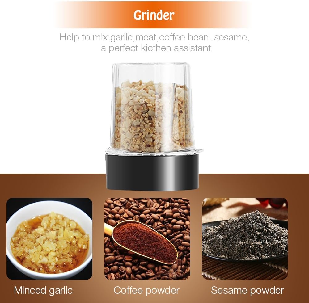 - 3 in 1 Mixer : 570 ml Standmixer, 1200ml Fleischzerhacker und 300 ml Kaffeemühle in einem. Mit diesem Universal Mixer kann man Zwiebeln, Kräuter, Nüsse, Fleisch etc einfach zerkleinern, ideal für Mixen, Pürieren von Suppen, Sossen, Salsa, Pesto, Salat-Saucen. Perfekter multifunktionaler Küchenhelfer zur Herstellung von Smoothies, Fruchtigejoghurts, leckeres Müsli, Babynahrungen usw