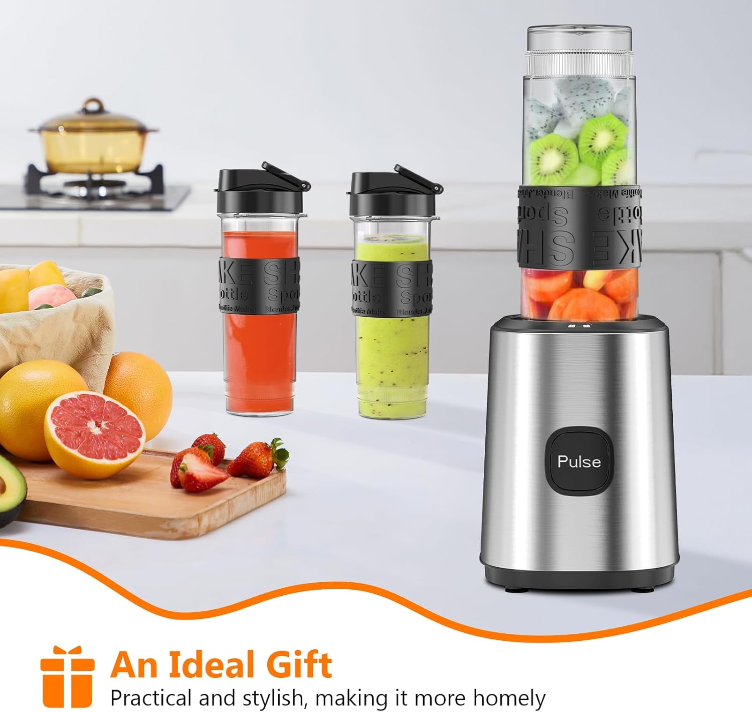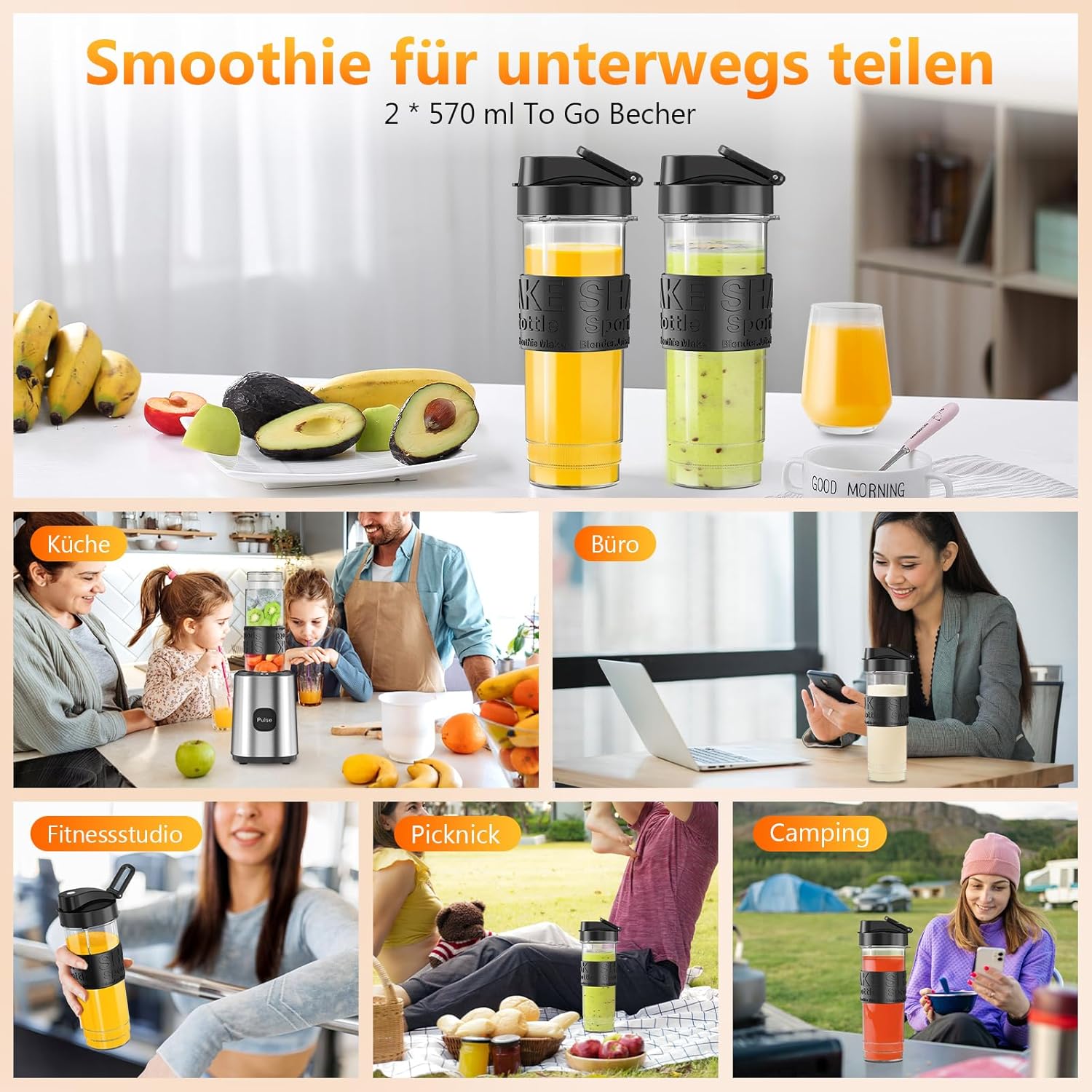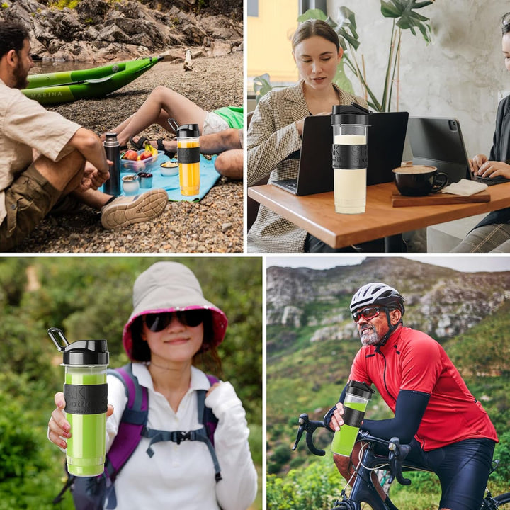 - 【Smoothie-Maker für unterwegs】Der tragbare Mini-Mixer ist eine perfekte Lösung für alle, die auch unterwegs frische Smoothies geniessen möchten. Mit seinen zwei Trinkflaschen à 570 ml und den auslaufsicheren Deckeln bietet er eine praktische und