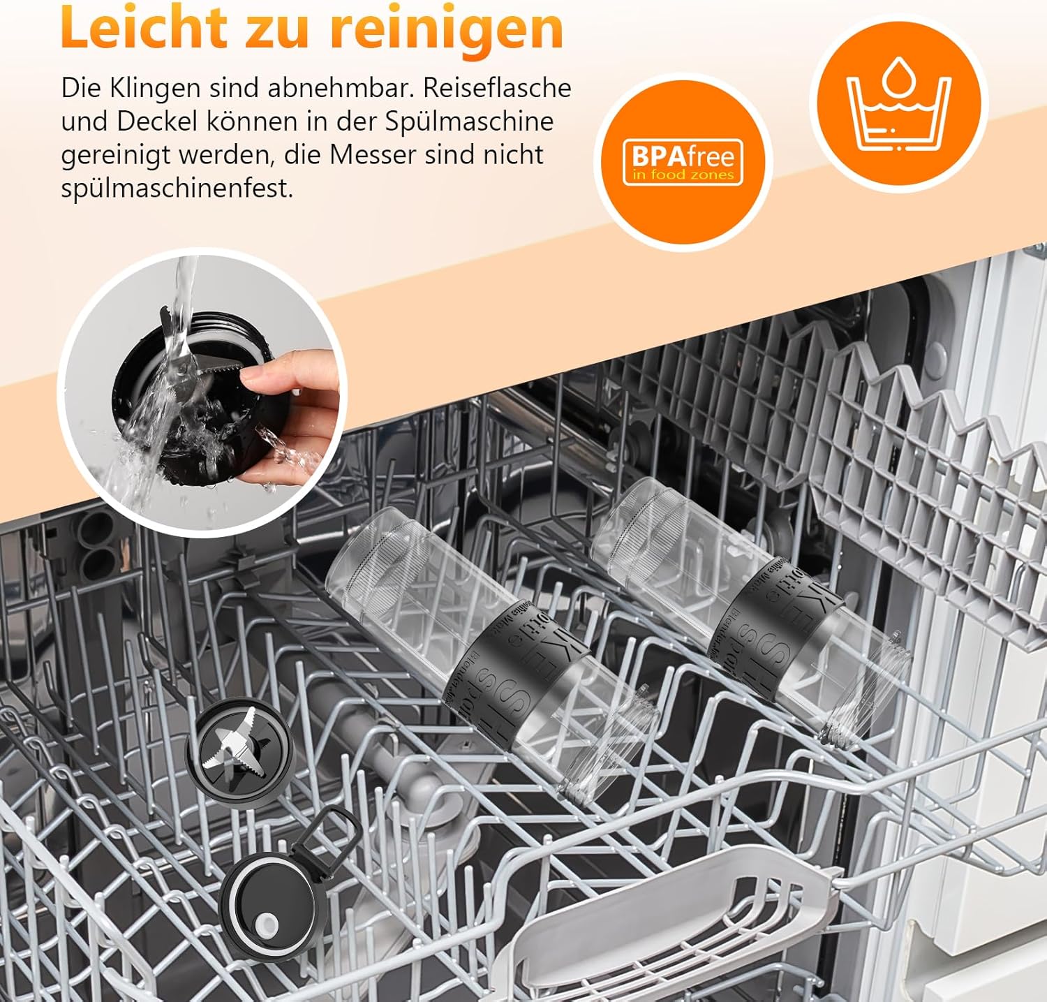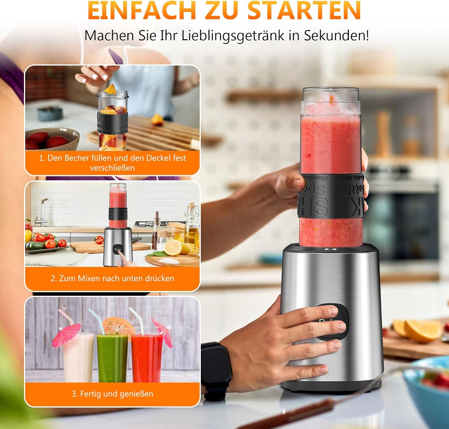 - 【Einfach zu bedienen und zu reinigen】Dieser tragbare Mini-Smoothie-Maker punktet mit seiner unkomplizierten Handhabung und einfachen Reinigung: Die Ein-Tasten-Bedienung macht das Mixen kinderleicht. Die BPA-freien Tritan-Trinkflaschen sind