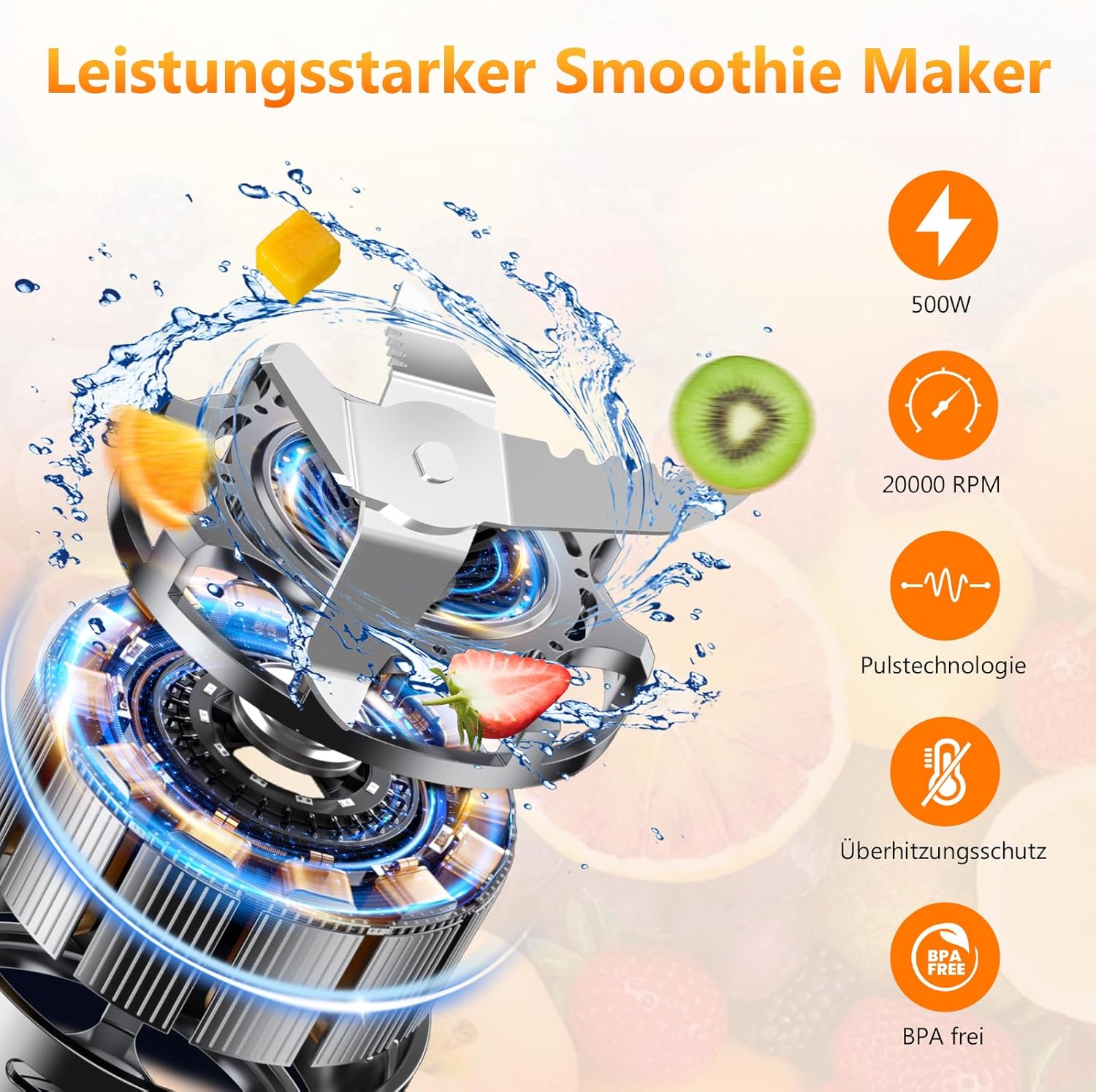 - 【Schneller und kraftvoller Mixer】Mit einem leistungsstarken 500-Watt-Motor und 20.000 U/min sowie 4 scharfen Edelstahlklingen erzielt dieser Mixer optimale Ergebnisse und bereitet Ihre Getränke in nur 20 Sekunden zu. Er entleert die Zutaten zu 100