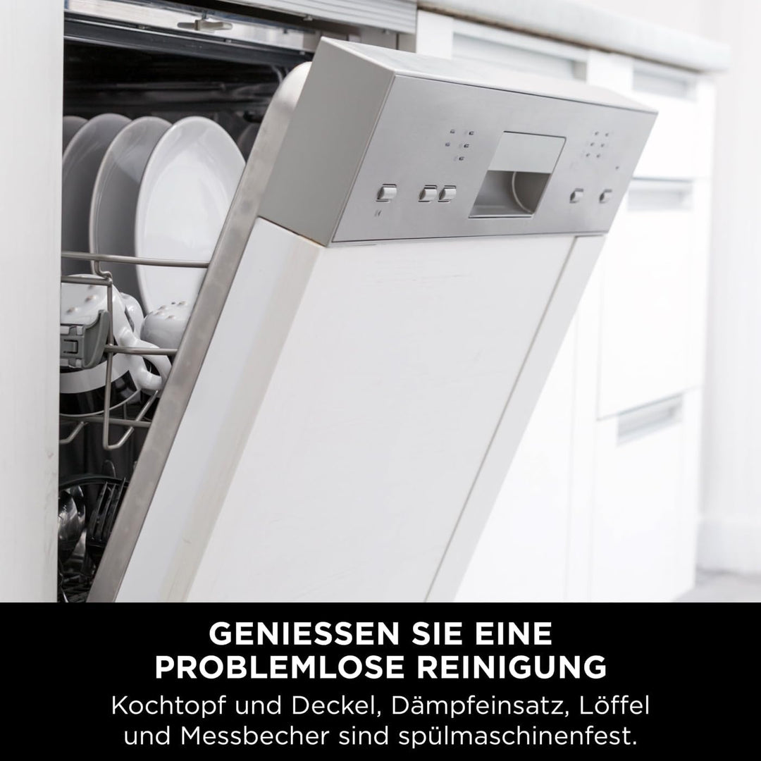 - 8-IN-1-FUNKTIONEN: Erfüllt die Aufgaben eines Slow Cookers, Reiskochers, Dampfgarers und Herds mit acht Funktionen: Anbraten, Slow Cook, weisser Reis, brauner Reis, Nudeln, Schmoren, Dämpfen und Warmhalten