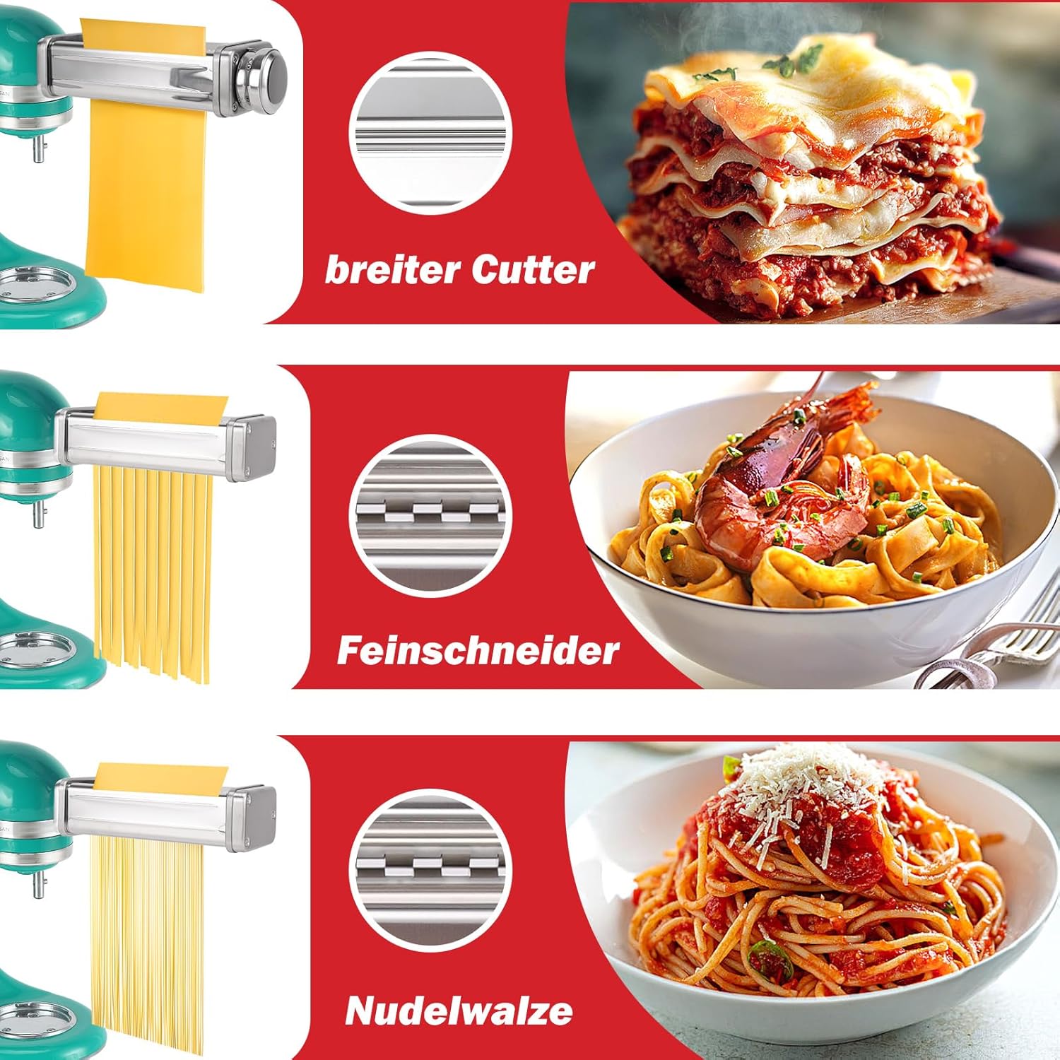- 【Perfekte Nudelrolle Kenwood】Ist diekitchen aid nudelaufsatz set für alle Kenwood Mixer, umfasst Pasta-Blatt-Rolle, Fettuccine Cutter und Spaghetti Cutter, Hilft Ihnen, schnell und einfach frische, gesunde Pasta zu Hause zuzubereiten. HINWEIS: 1.
