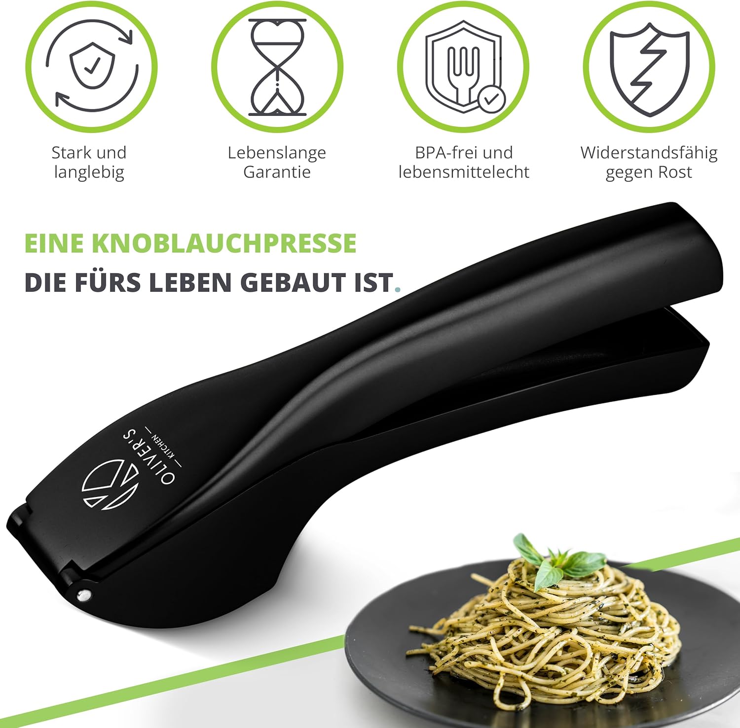 - 🌀 VERBRINGE MEHR ZEIT MIT KOCHEN, WENIGER ZEIT MIT REINIGEN: Im Gegensatz zu der Knoblauchpresse, die du zuletzt weggeworfen hast, hinterlässt die Knoblauchpresse von Oliver's Kitchen weniger Abfall und ist leicht zu reinigen. 100% spülmaschinenfest.