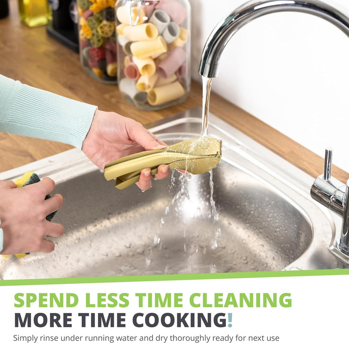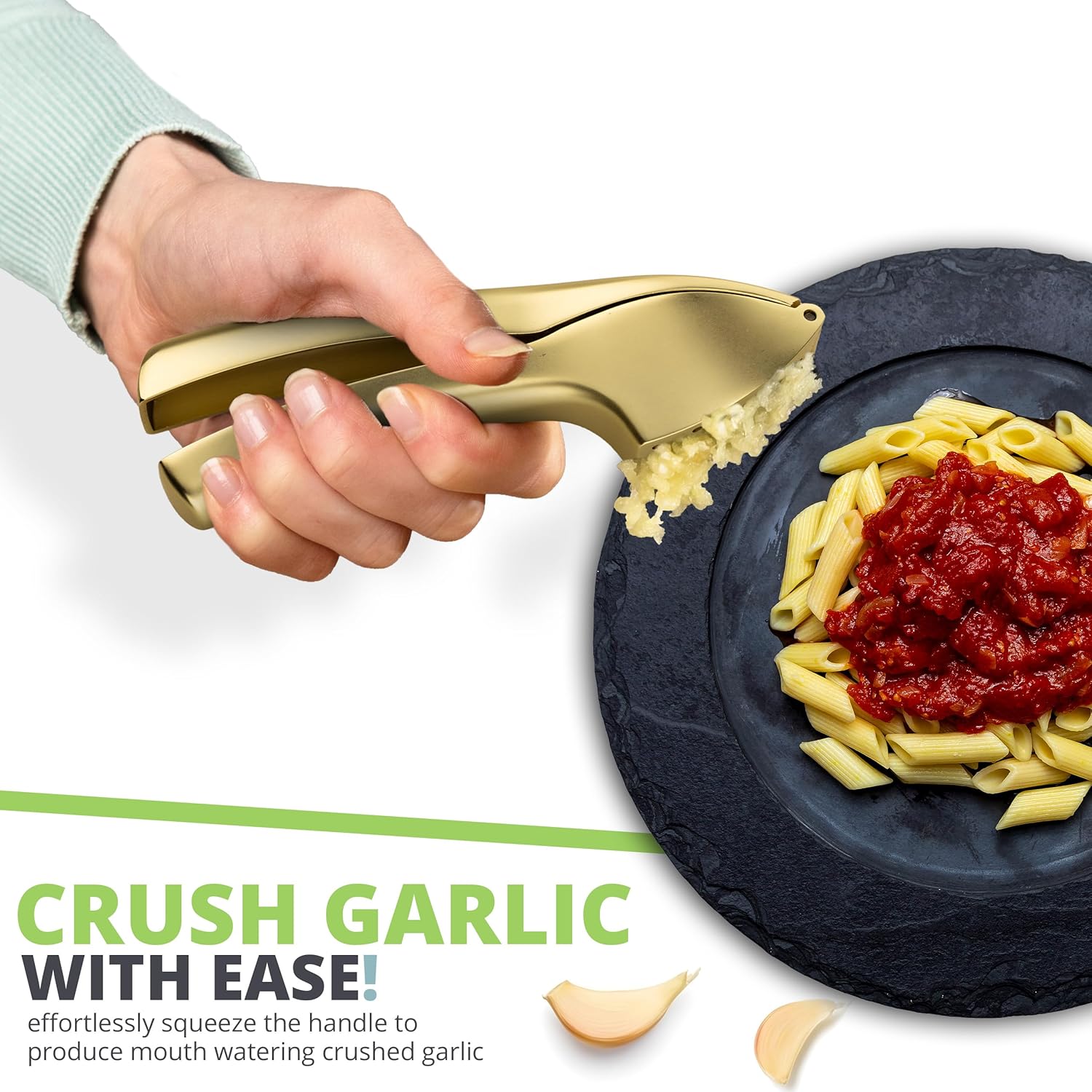 - NIE WIEDER EINE KNOBLAUCHPRESSE ENTSORGEN: Unterstützt durch eine lebenslange Garantie, ist unser Knoblauchzerkleinerer anderen minderwertigen Knoblauchpressen überlegen. Extrem stark und langlebig.